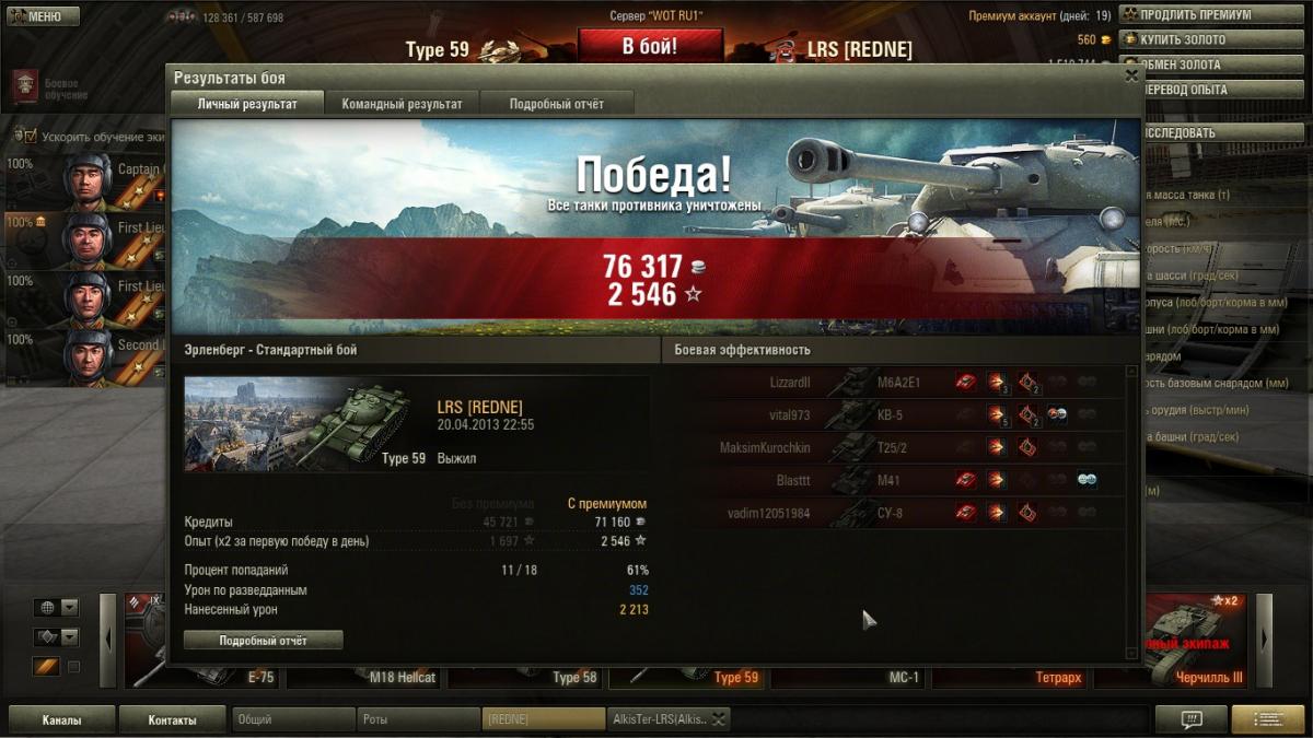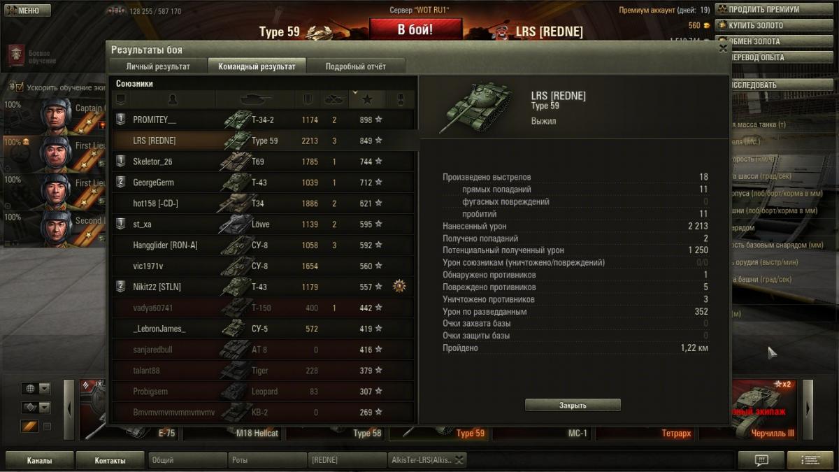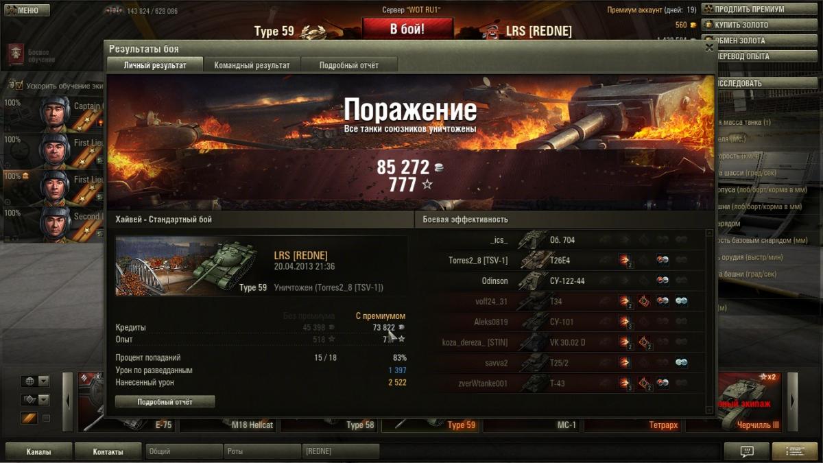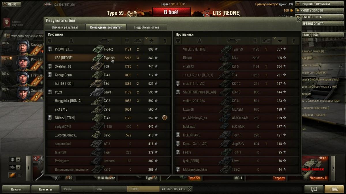Ребята я вас не понимаю .... чего вы хотите ? Неужто Премиумный СТ-8 который будет гнуть тяжи 8-9 уровня ? Отчего такой негатив ? Я играю весьма средне .... но блин я просто играю . Вот скрины второго за сегодняшний день боя на 59 . Опять проигрышь , ну тут уж я ничего не мог сделать . Но объясните как так получается что у меня на этом говнотанке , с кривой пушкой которая никого не пробивает урон больше чем у ТОПОВ команды ? И с деньгами я опять таки остался несмотря на проигрышь