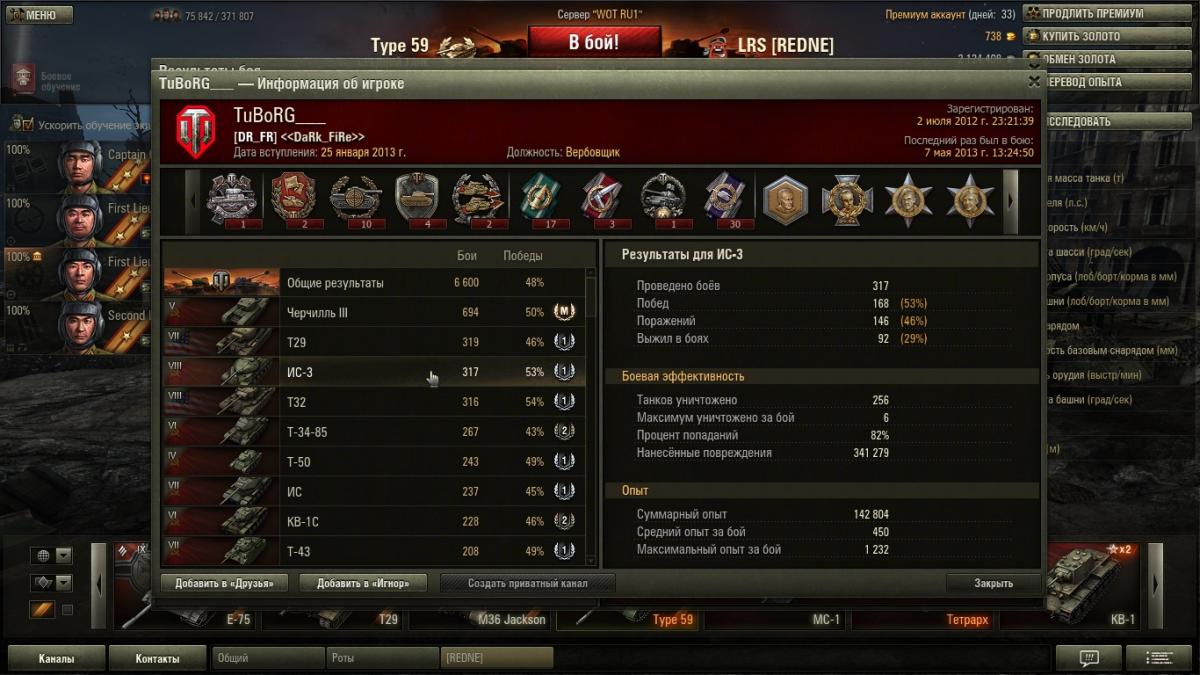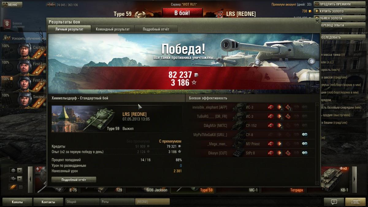 Причем у меня на Типе -59 результаты весьма средние , к нагибаторам я явно не отношусь . Просто играю в свое удовольствие