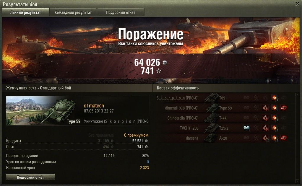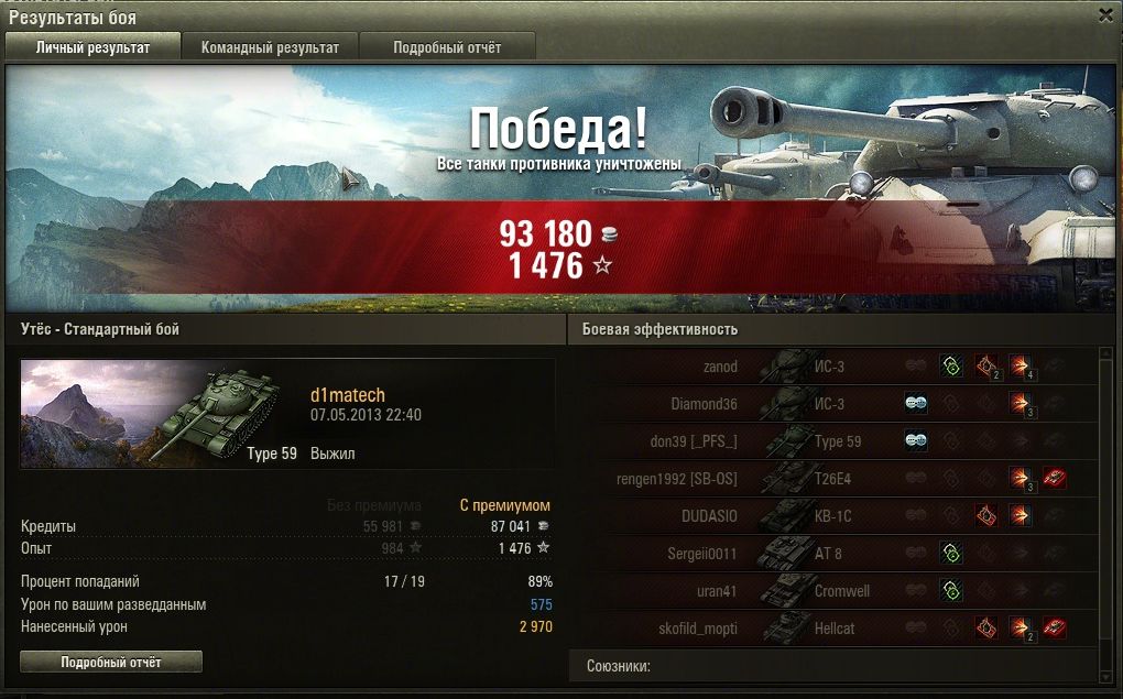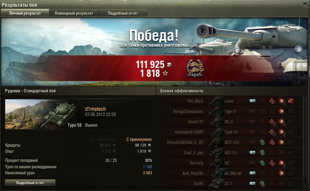 Причем у меня на Типе -59 результаты весьма средние , к нагибаторам я явно не отношусь . Просто играю в свое удовольствие