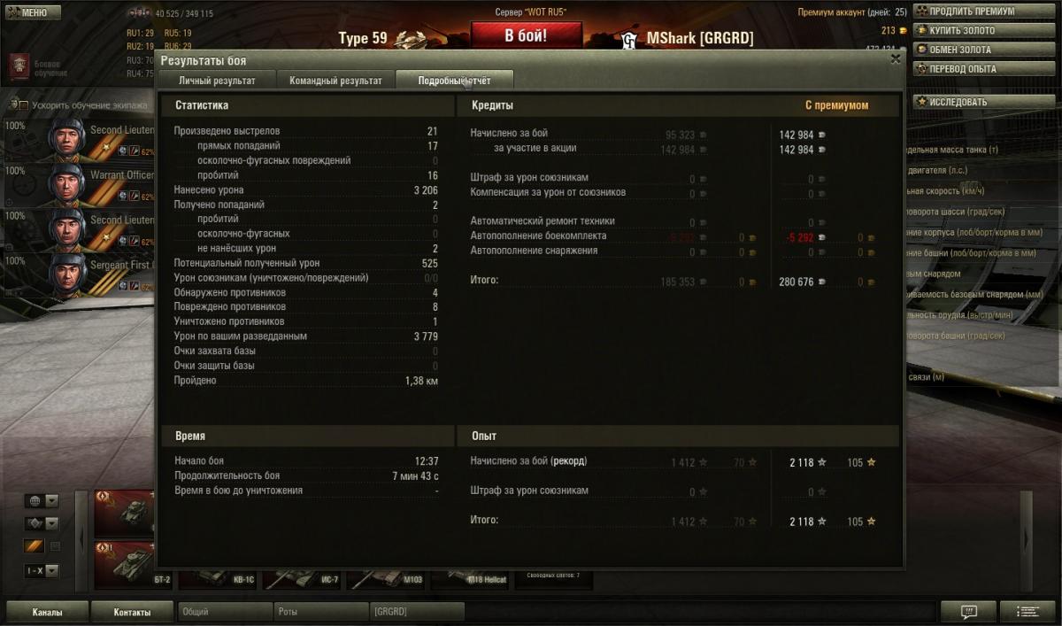 куча бабла, рекорд по опыту... бой затащил легко и красиво )