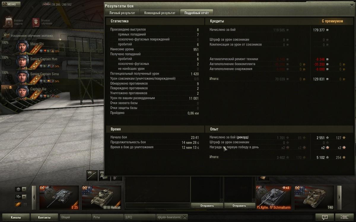 Получено опыта: 5 102 (x2 за первую победу в день)