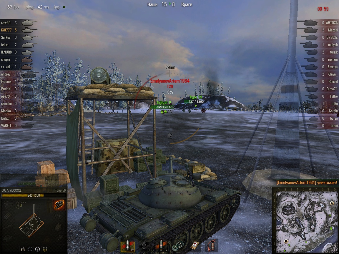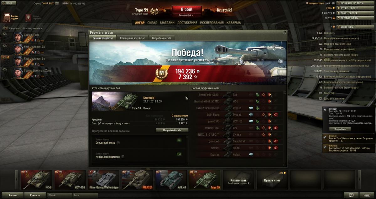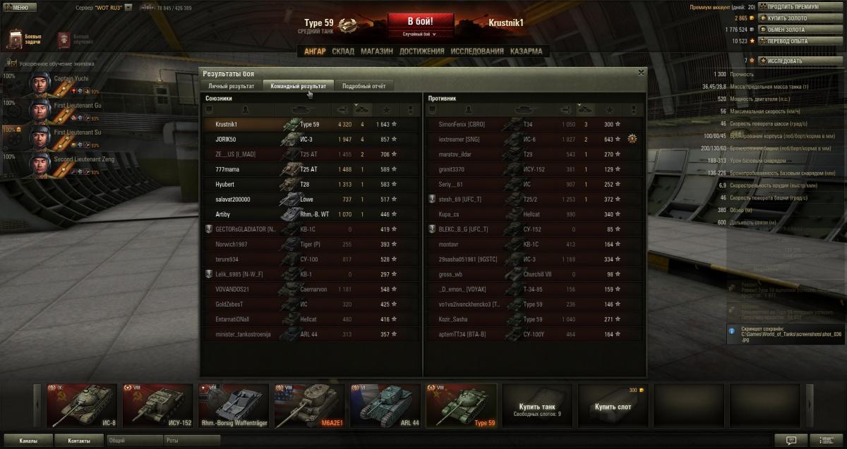 да тогда было меньше 9-10х уровней,хотя в 10 й т59(не взводный) не кидает.но опять же повторюсь было мало серверов и они уже не выдерживали 250 тыс онлайна.и все же эта гуща типов раскидывалась на свой уровень.пусть даже если его и кидало раз в 5 ть боев к тому же ис-4 и другим старожилам но не как сейчас,что заходишь в бой и ты в середине а то и ближе к низу списка где топ по 3-4 9х уровня.и где тут фан?даже вброс от разработчиков ввиде 5% увеличения доходности на т59 не повлиял на ситуацию.я думаю у многих типик теперь пылится в ангаре,разве что пару тройку боев для мальца серебра.как впринципе это относится и кв5 и льву им тоже досталось по самое нихачу.кв5 мол не пробить и лева струляет на 400 метров не целясь и где теперь все эти нагибаторы?правильно,прем тт8 вкидывает на 10й уровень.вообще у типа ситуация как и с т54 произошла,о которой уж точно все знают.а про количество в рандоме нарыл вот только этот скрин,как видно 5 типов в одной команде