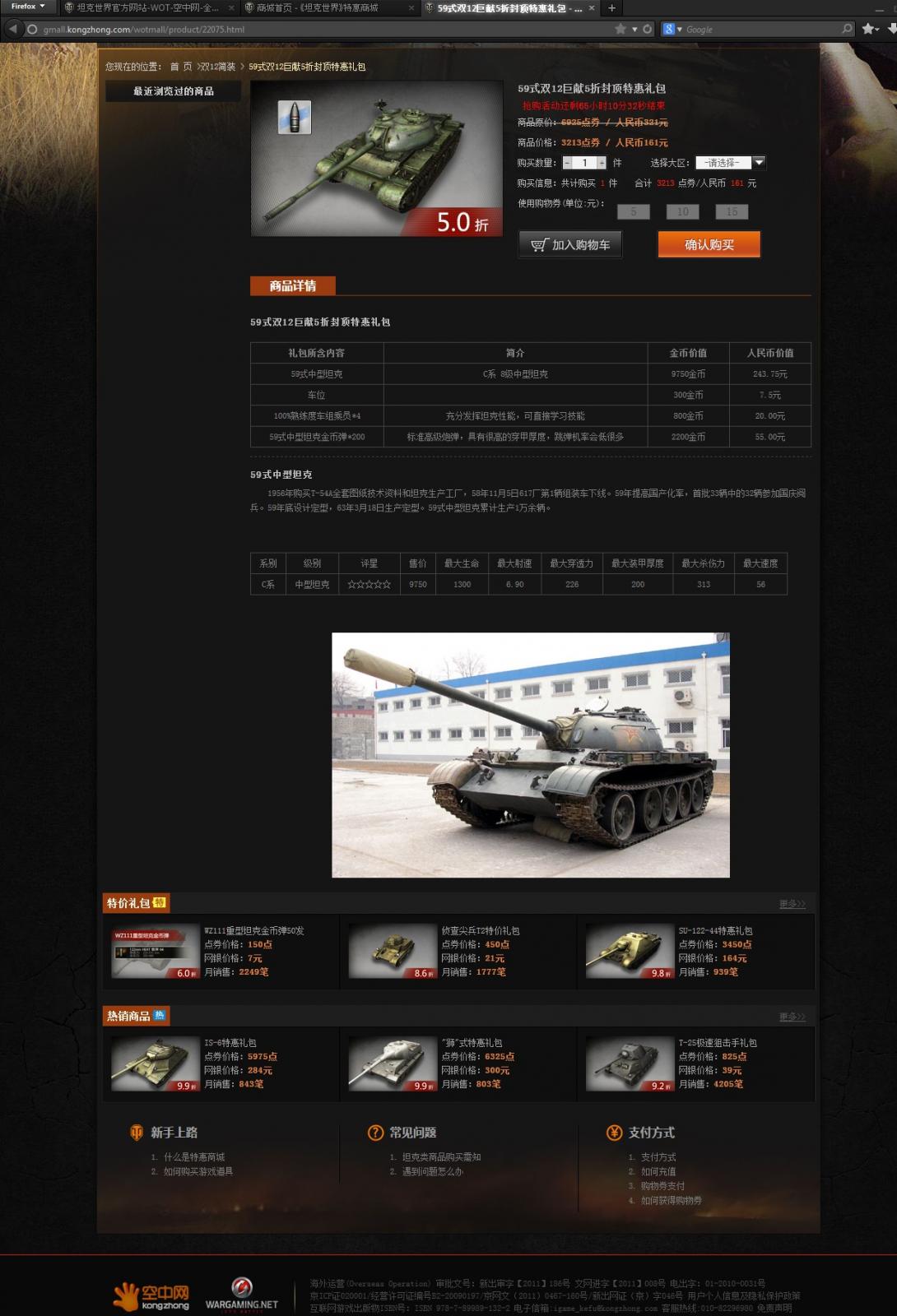 Сейчас на китайском серваке ВоТ идёт акция, продают тайп59 со скидкой 50% за 161 юань. Ну что могу сказать. "Вот 59 скорее всего возвращать в продажу не будем. Слишком он не-по премиумному сбалансирован."