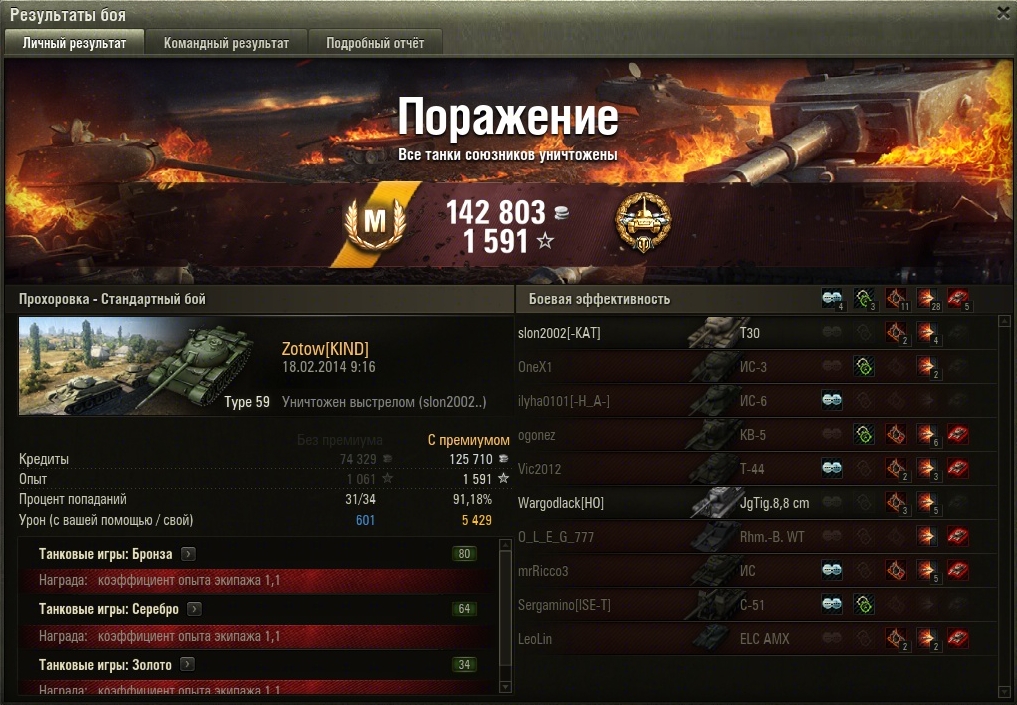 Вот этой ночью попросил кореш с взвода помочь ему разок выкатать Т-44 (снять 2х). Другой созводник взял Т-34-2, а я подумал что вариант Type 59 будет неплохо, но увы, ошибка - ночь ведь и, в основном, катают 9-10 лвл... Попал наш взводик в низ списка (ну там где край плинтуса по ходу или ниже...) Мы начала ржать и советоваться куда ехать на "слив". Попали на нижний респ и решили ехать на А0. по ходу движения был замечен на подходе к А0 взвод  с 2-х лориков. Они быстрее выехали туда и только мы поднялись как наш взвод грамотно взяли в клещи два барабана 9 лвл. Получил пару пробитий каждый, быстро выехали, и я затаранил одну лорку, потом внизу  пристрелили 2 лорку. И тута на горе засветился ИС-7 и давай шмалять (ну понятно, тех кто у плинтуса) а вдоль дороги, за барханом, ИСУ-152. Ну все вот и слив, - первая мысля. Но помогли союзники, убили исуху и 268 с хевиком полез в лоб к ИС-7 на гору. Наш взвод ринулся дальше, слева обходя гору и тут удача: впереди замаячил гиви-артобл....ка. Делаю с вертухи 2 выстрела - мимо! :facepalm: Сбоку выскочил фуловый Об.140 и ваншотом добил нашего Т-44, сразу завалили арту и давай тягатсо (уже в два ствола + пара шотов ему дал хевик) с Об. 140. А тот бобер свалил за поворот к ИС-7. Семерку с горы спихнули 268 и хевик. Нашу пт прибили, хевик в лоб семерку - "никак" ибо был размазан еще и вафелькой. Размазываем 140 и сразу фокусим да мочим ИС-7, держа его на на гусле... Итог боя простой: мне "Камикадзе" за лорика и максимум опыта за бой, а другому "рисоеду"-созводнику медаль "Лехвеслайхо" за Об. 140 и ИС-7... :eyesup: