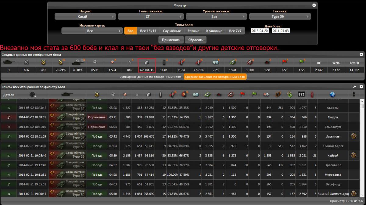 Судя по твоей статистике это ты алеша раз за 1200 не научился играть на этом танке.