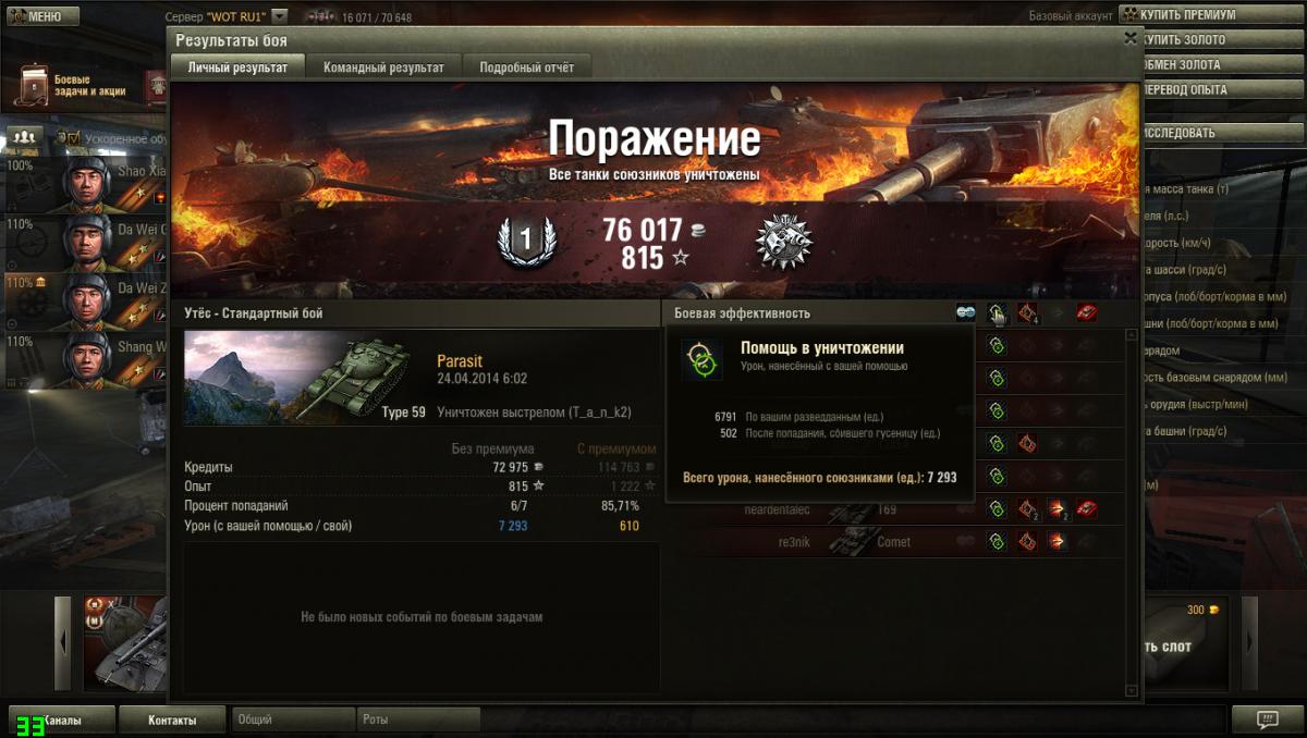 Причем такая фигня именно на Типе 59. На остальных танках некоторые напарники иногда помогают.