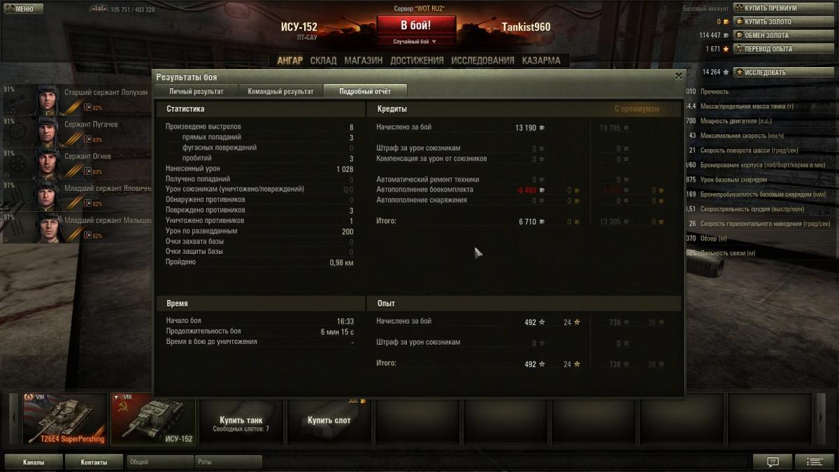 Tankist960 Опубликовано: 24 января, 2013 Игроки 205 публикаций 25 410 боёв Поделиться Опубликовано: 24 января, 2013 Заметил странность играя на ису-152,вот в чем она заключается: стреляя премиум снарядами выходит меньше опыта чем простыми фугасами хотя урона значительно больше,вот скрины: 4655469.gif Ссылка на комментарий