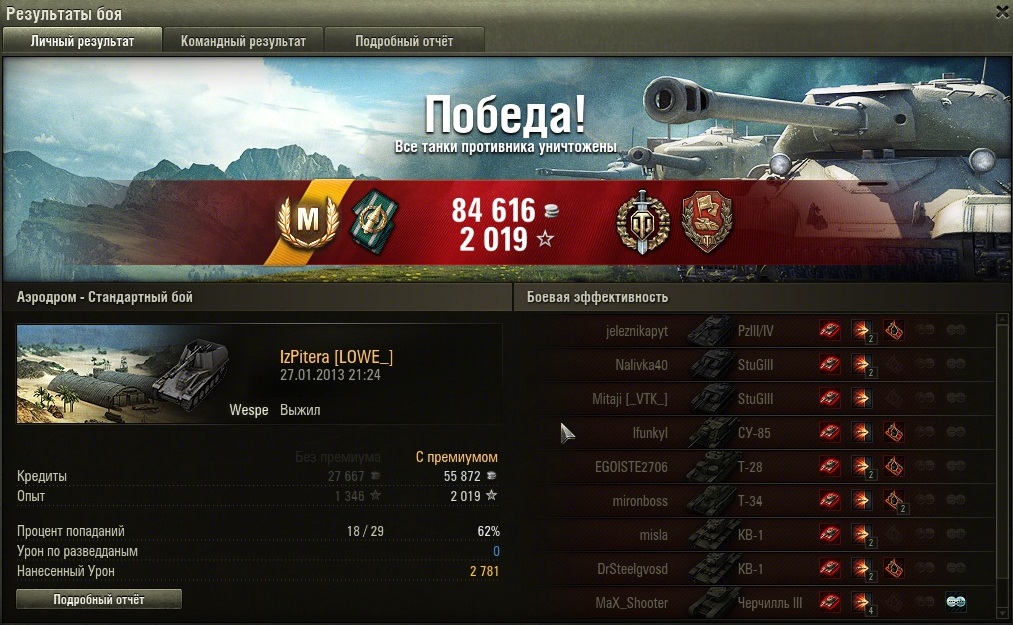 _Nexus_TJK_ Опубликовано: 28 января, 2013 Игроки 108 публикаций 48 922 боя Автор Поделиться Опубликовано: 28 января, 2013 28 Янв 2013 - 16:00 пользователь werty_87 сказал:у тебя на ней каждый бой 2800 урона??? врятли я же образно)) Ссылка на комментарий