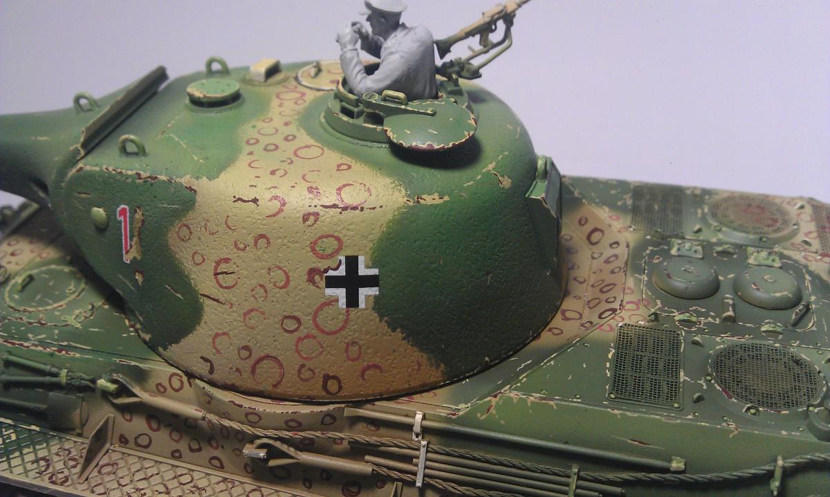 Хочется представить, а что если.... война не закончилась и немцы выпустили Лёву и свой Маус и они столкнулись в боях с нашими танками. Экипажи опыта поднабрались. Мой Лёвой командует то "Чёрный принц" (взят из набора "Кибер Хобби" Пантеры, одноглазый такой мужик)! Не такой уж он и новичок   :Smile-izmena: