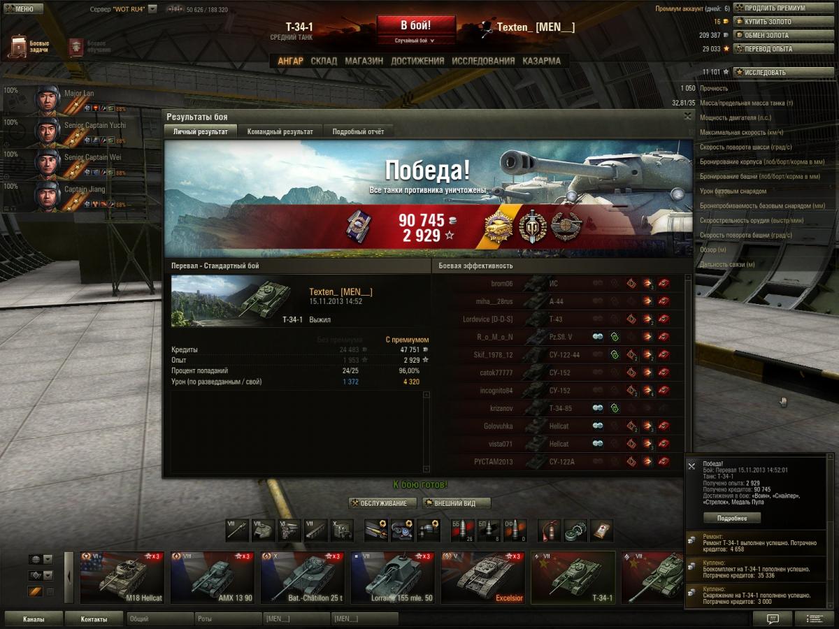 вот что творит т-34-1 с топами 9 лвла, все что касается вашего нытья про динамику броню и тп, все включено в реплеи , и еще раз скажу танк имба для истинных стшников, если вы не он, то сочувствую)