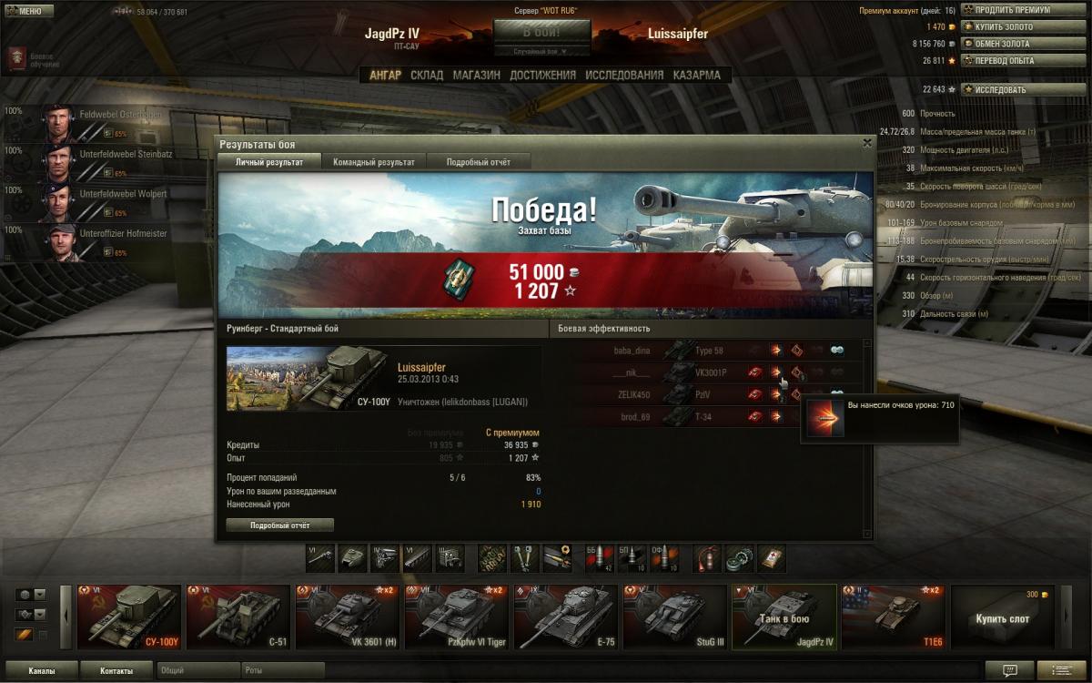 а ваншоты не  редки для такого дамага и врага 4-5 уровня Только что черча 3 ваншотнул , а вчера Pz IV.