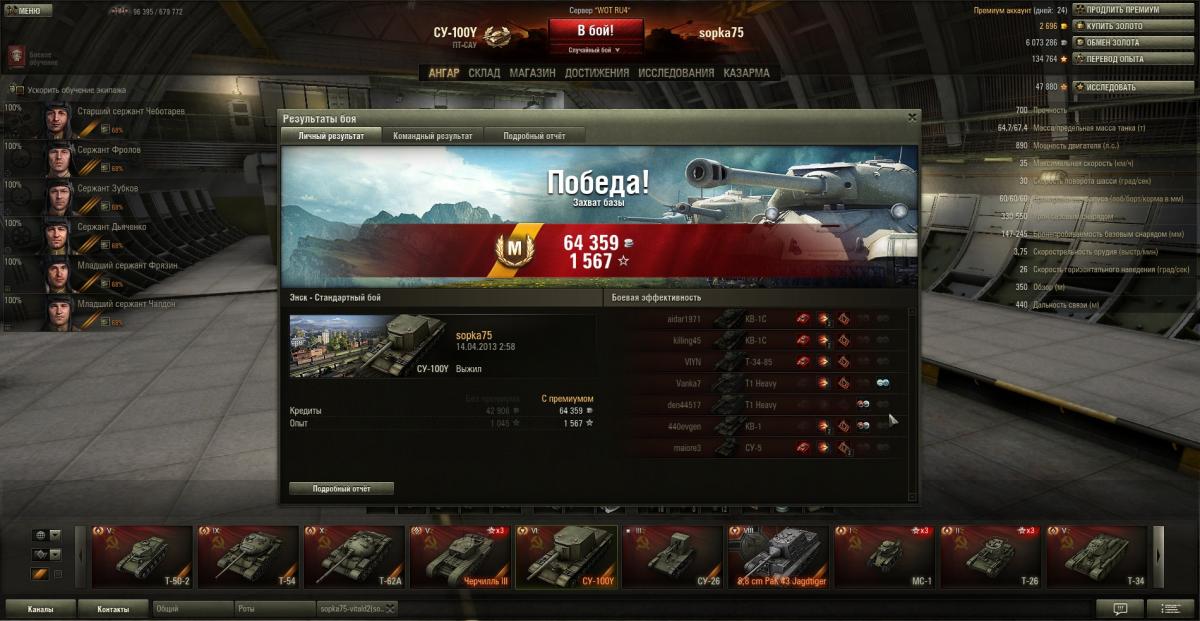 Предлагаю выгнать мой КВАС и Ваше корыто и посмотрим, кто и сколько будет дергаться после первого попадания. И с учетом перезарядки доживет ли СУ-100Y до своего второго выстрела. Теперь к вопросу о СУ-100. СУ-100 я считаю лучшей пт 6 уровня благодаря альфе, бронепробитию, незаметности и размерам. Довольно рикошетная маска орудия, если знать, как ей пользоваться. Сравнивать ниндзю и сумоиста занятие неблагодарное.