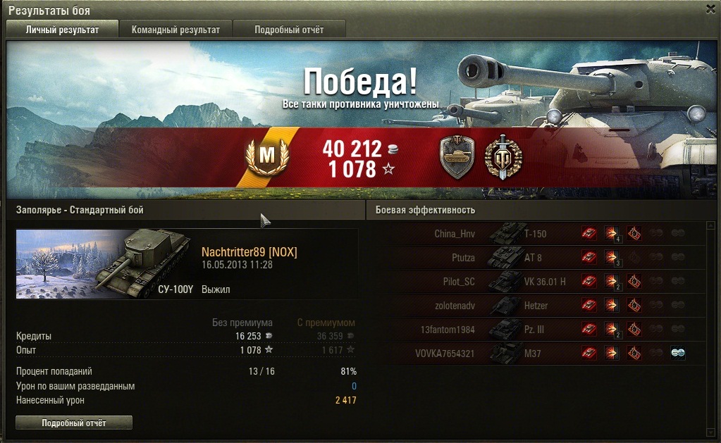 Я не папик,но с 8 уровнем мне нравится драться. Хирак! и полХП нет... Норм техника,только,конечно не надо на ней в атаку ехать...Ололораш я вообще не люблю,а на игорьке он противопоказан.) Эта подлая ПТ стоит где то далеко,а потом выносит самого крутого танчика наполовину.и сваливает.И под арту в таком случае совсем не подставляется. Изменено пользователем elefant_74