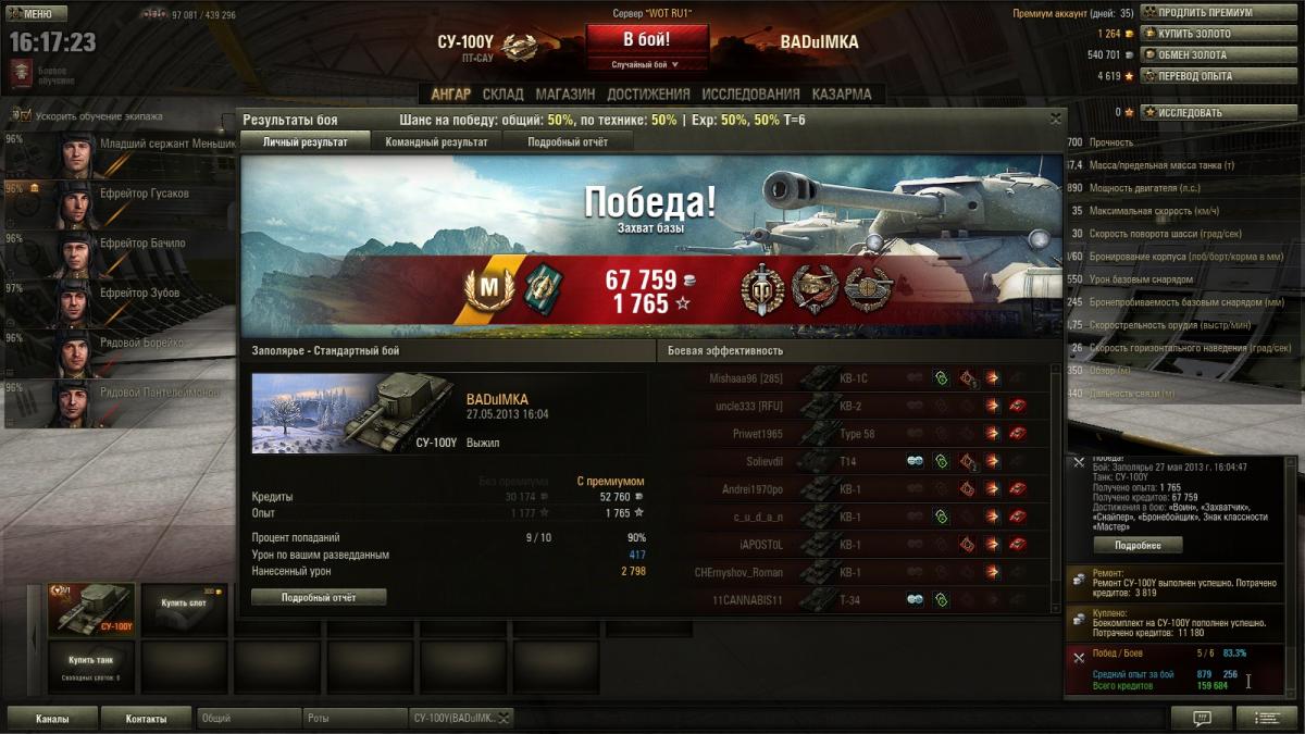 Из модулей стоит досылатель,рога и приводы.экипаж брал 50% с дальнейшим обучением до 75% так как купил на чистом аккаунте.