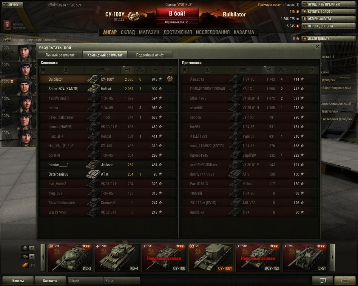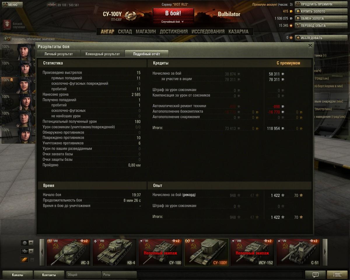 СУ-100Y  Опыт:  2 716   Кредиты:  116 052