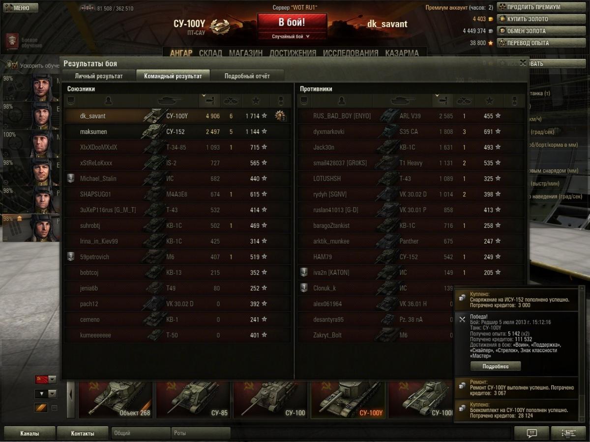 Ездил взводом из 2 хеллкатов и меня на СУ-100Y. Хеллкаты светили неплохо, я наносил убойный дамаг по 400-500. У этого танка 4 проблемы: