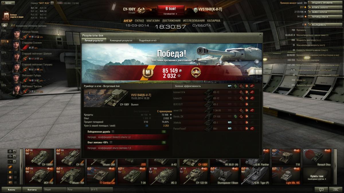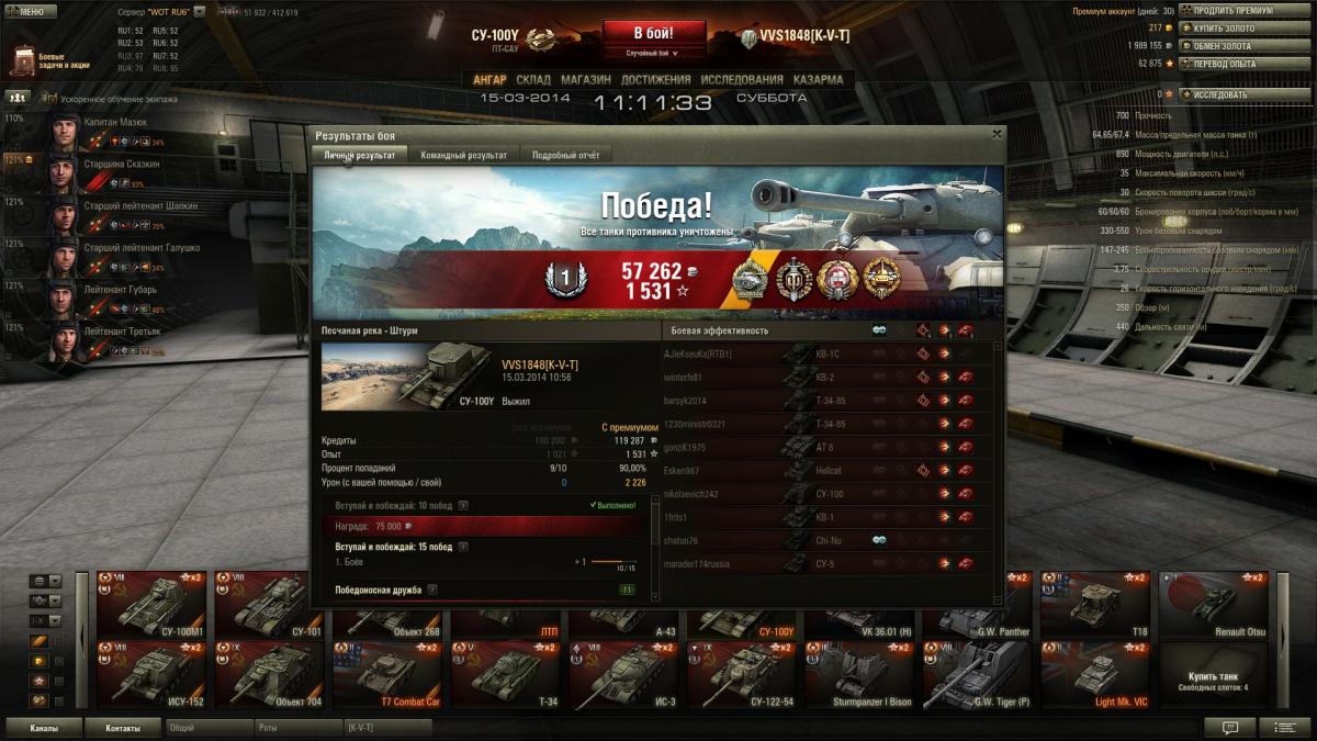Взял эту пт еще в обнове 0.8.8, если память не подводит, понравилась своей пухой (точность, вынос, пробитие). Прокачал перки, стало еще лучше. Сейчас(0.8.11) ее или порезали или не знаю. Вынос упал как у кваса, появился разброс. су-100 точнее чем су-100У хотя параметры лучше.