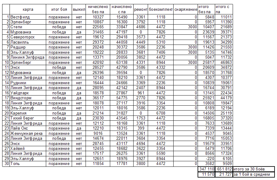 Откакатал в выходной 30 боёв. Сделал записи по прибыльности. Процент побед за этот марафон снизился с 61 до 54. :ohmy: