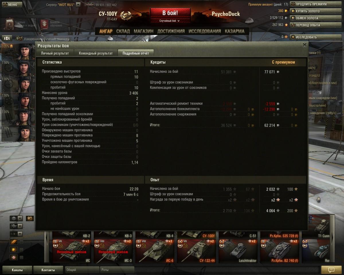 Снова покатался на "Игорьке", несмотря на все минусы, машинка очень неплохо фармит (с премом) для 6 уровня.