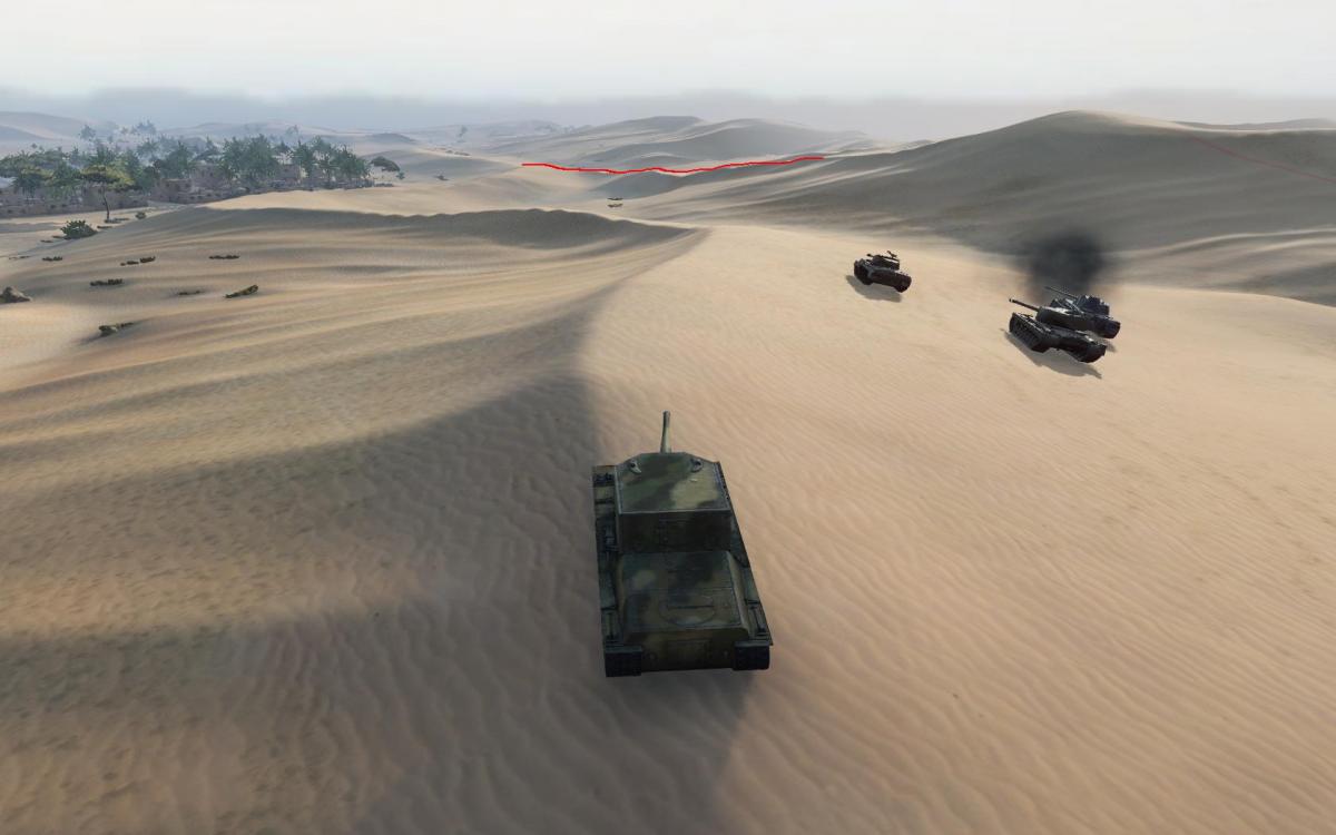Дюны на южной стороне - теперь гораздо ниже и спокойно простреливаются с востока. Тем более, что там появилась новая низкая дюна, которая позволяет проехать врагам на расстояние, достаточное, чтобы светить почти всех.
