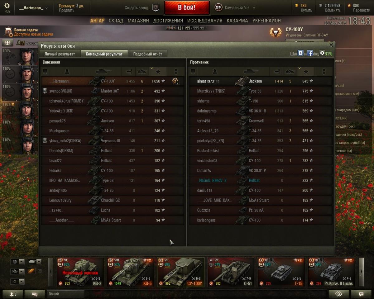 http://wotreplays.ru/site/4895730#prohorovka-hartmann-su-100y