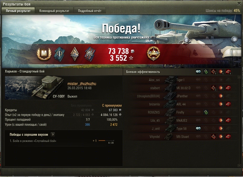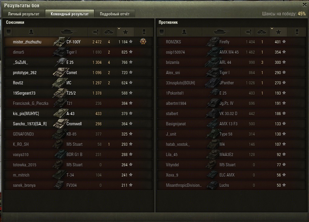 блин из 30 боёв 2 победы . Это как ? Почему её кидает на слив , танк нравится , но зделать ничего не успеваю т.к в первые 2 минуты боя команда сливается и остаёшся один . Да и насчет пушки , 197 пробития как бы нет , по ощущениям су 100 пробивает лучше со своими 175 . А это же какой то капец /, кв1 в бок с 200м не пробивает , причем не только его .А заряжать голду уж извините , не для нее танк брался . Да и где и кого пробивать знаю . Ис 6 так же с 200м не пробил 3 раза подряд , и тут вопрос : где её хвалёные 197 пробоя ? Мастера взял почти сразу за 2800+к дамага Изменено пользователем SteVaNn
