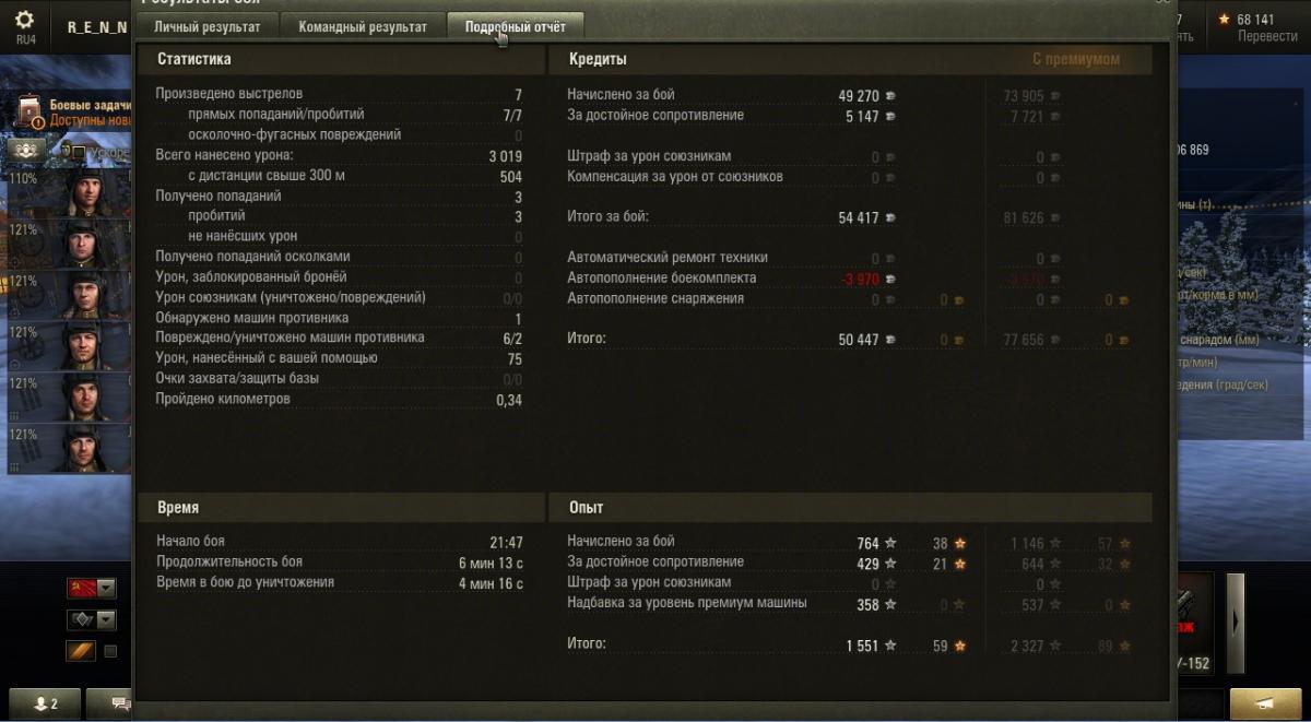 Упреждение беру чисто по привычке, но однажды не успел довернуть корпус за КВ-85 и пальнул в корму.