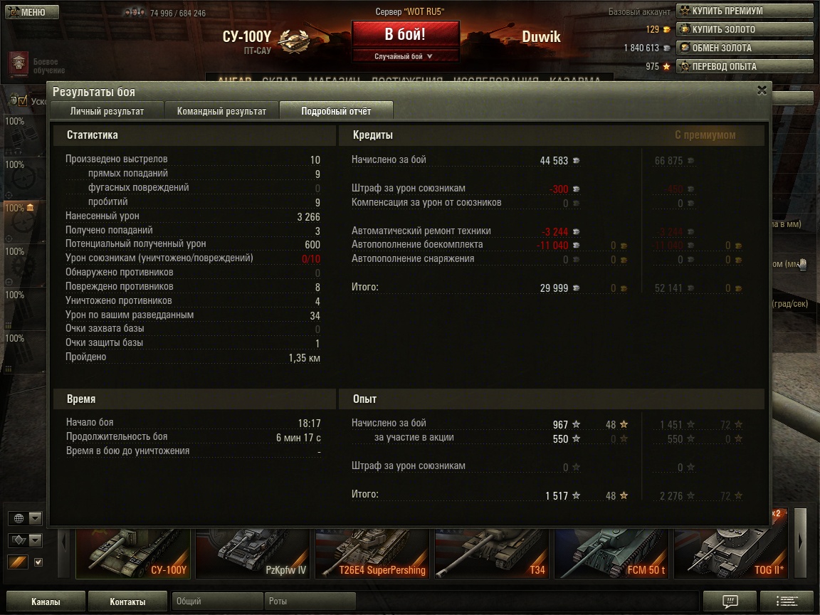 PS: 30к кредитов чистыми без па. TOG II* в этом плане более стабильный, хотя такой же "большой и картонный", но зато попадает в бои только 6 и 7 уровня.