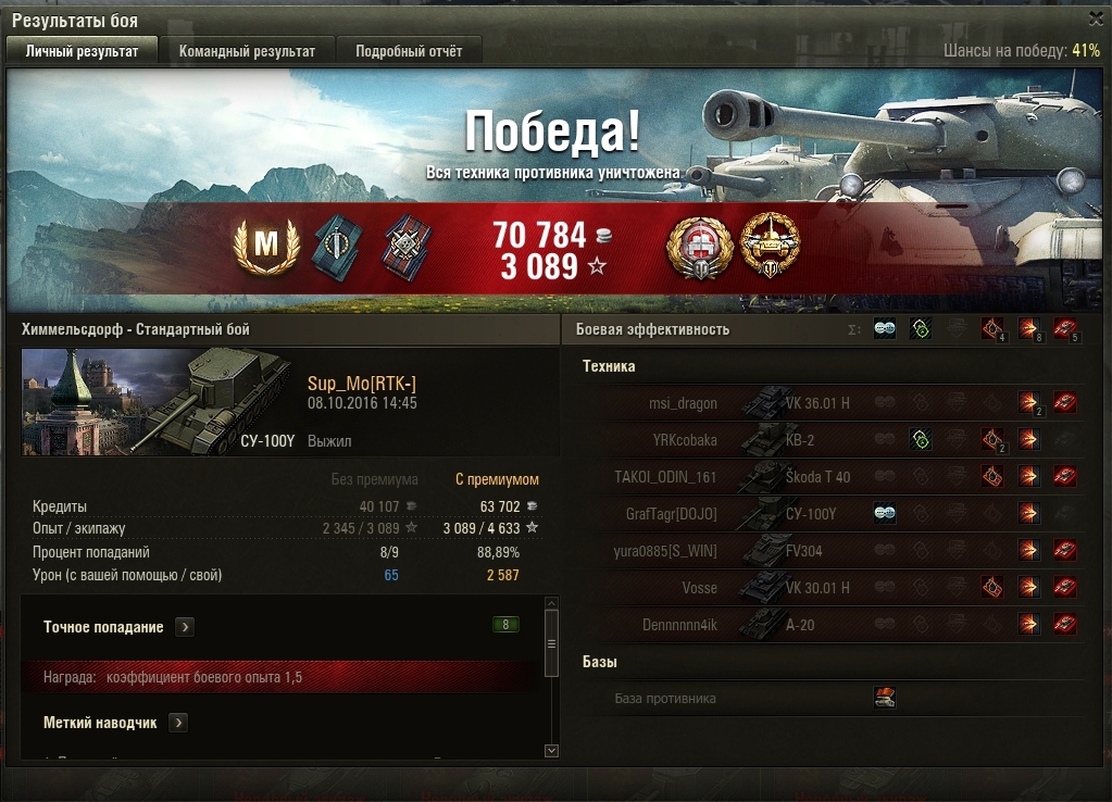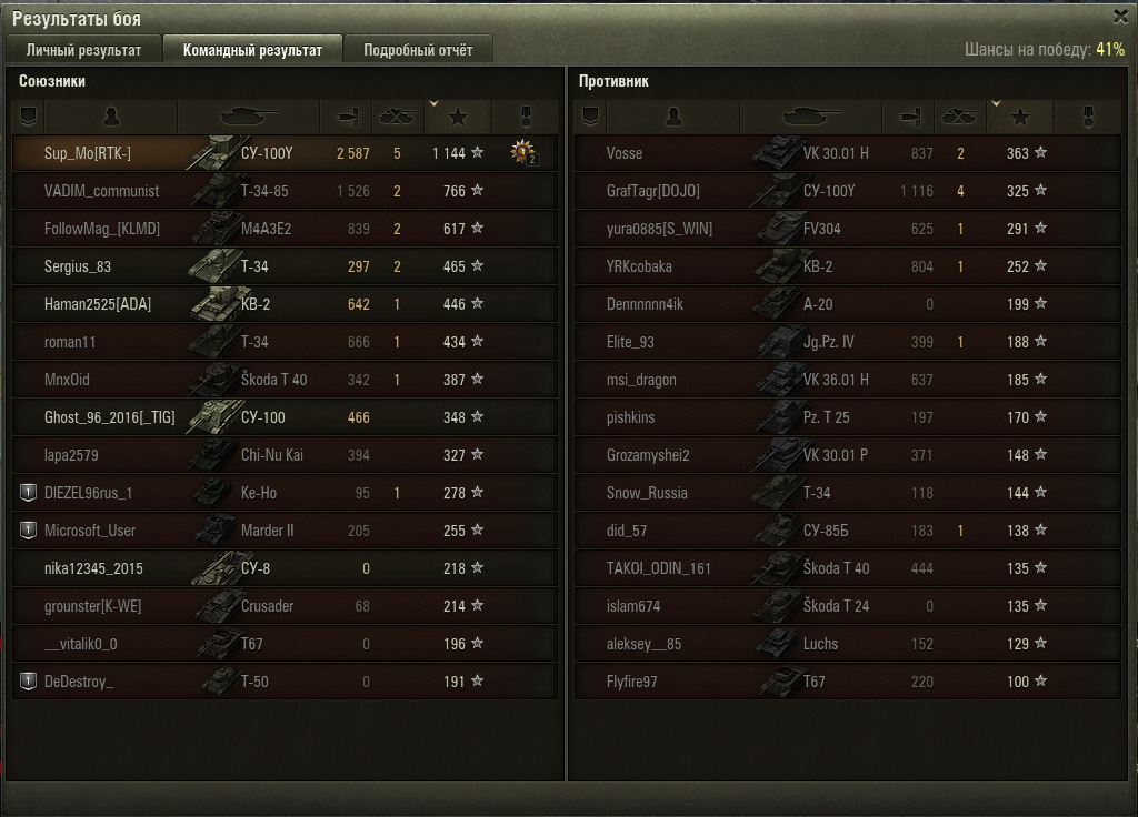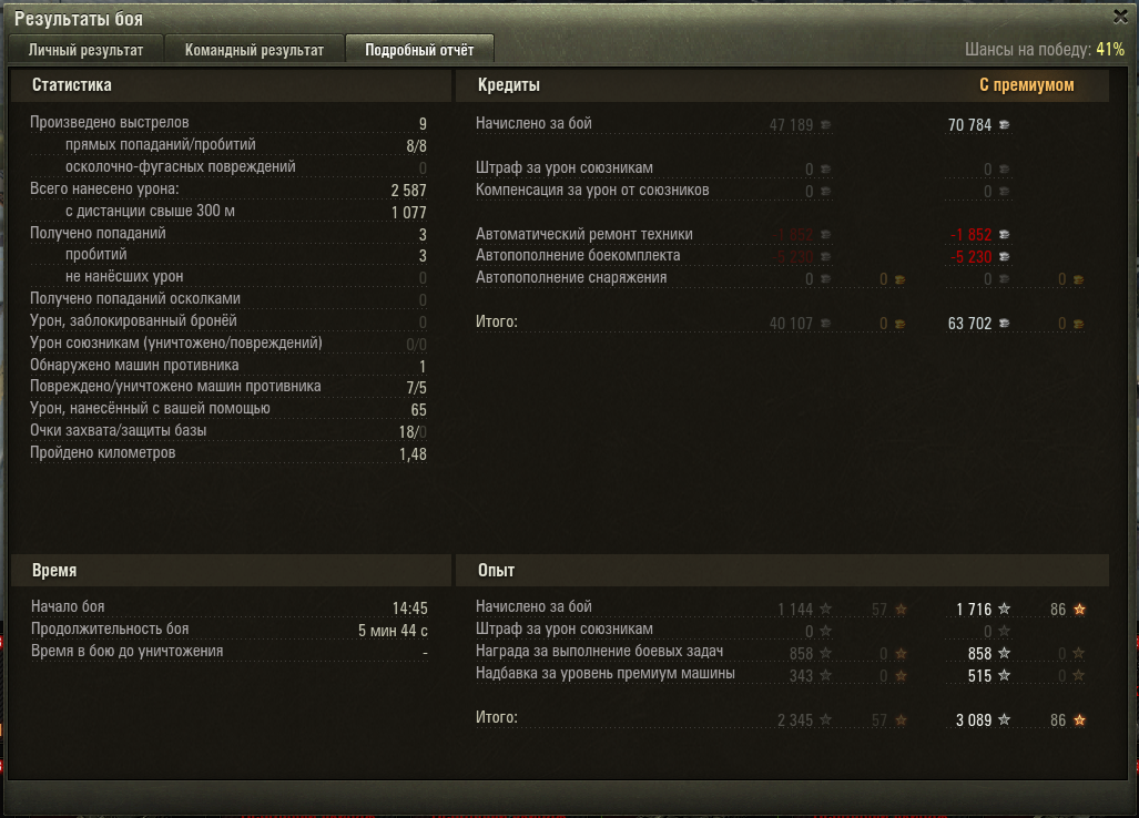 почитал ваши отзыва, решил скатать 10ток боёв соло. ток 100у. при том что я 1-2 боя вобще не оч откатывал. 0-1 пробитие. А главное я почти не был в топе, ср лв бойв 7.1.