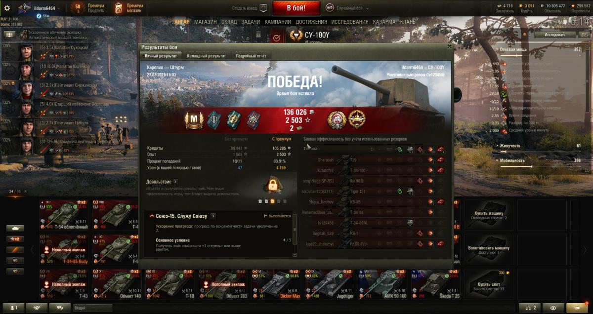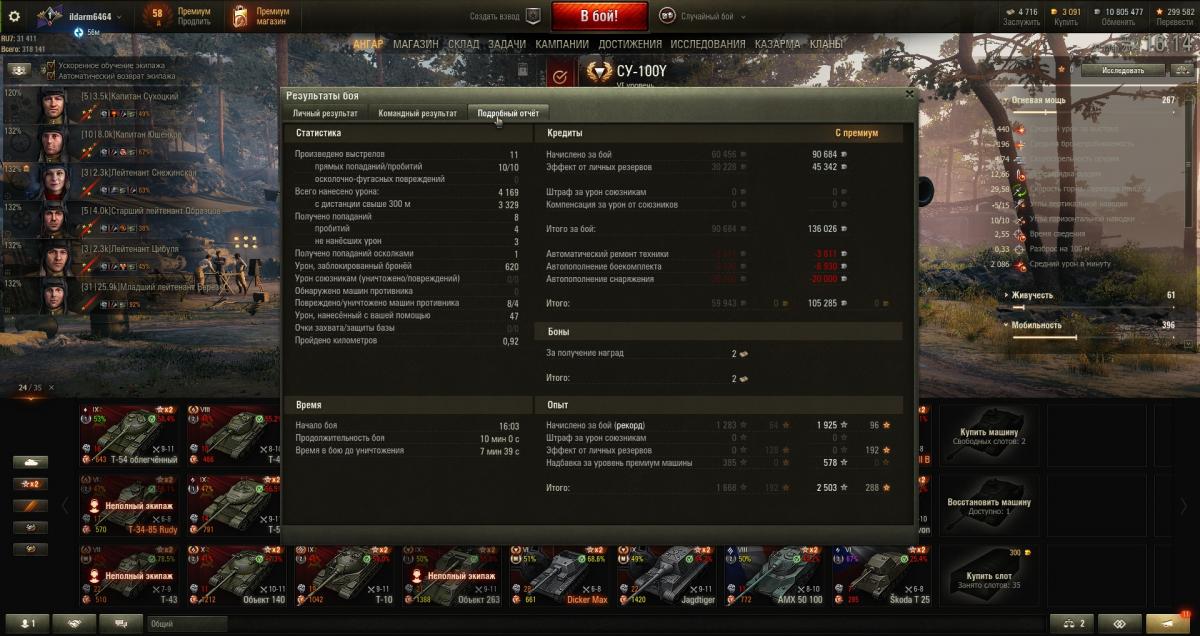 P.S. Посмотрел свою стату на СУ-100Y и похихикал: средний урон 827, т.е. в бою удаётся реализовать всего два результативных выстрела... Танк мечты, млин.