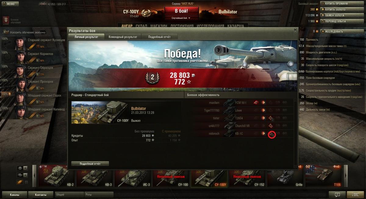Эт верно,про промазы.в4ера так красиво выманил на меня уип 58 наш недобитый 34–85 уже ваншотного для меня,как раз перезарядка подходит,сведение полное..выстрел,промах на метрах 300 на каких то пол метра..и куча комплиментов от уже мертвого нашего игрока,даже совесть блин проснулась(((обидно было.после этого искупил вину кровью-вражеского типа таран и тотадьнле уничтожение....