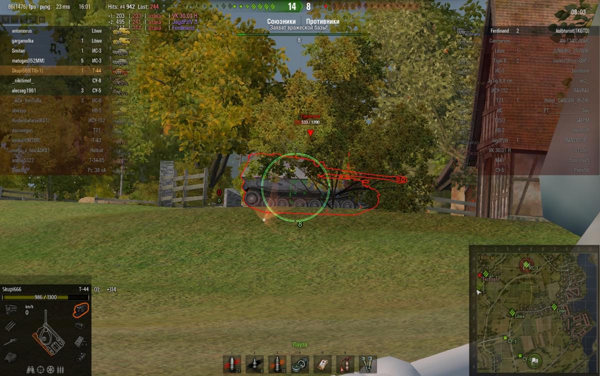 Fakemaker Опубликовано: 20 мая, 2013 Игроки 393 публикации 39 798 боёв Поделиться Опубликовано: 20 мая, 2013 20 Май 2013 - 15:08 пользователь GALIL сказал:Нужно БОЛЬШЕ модов!А вообще у вас был рассинхрон с сервером.Правильный ответ.Раньше для этого был серверный прицел, теперь его переделали, и он стал просто тормозящим.Да и тебе вообще повезло, что твой снаряд не полетел покорять глубины космоса. Мой кумир №1: xxxmixxx Мой кумир №2: _i_ravenor_i_ Мой кумир №3: Vanek_21rus123 В ангаре куча хлама и бесполезных железок. Танк всего 1 - Маус, немного апнутая, в связи с вводом физики, модель. Ссылка на комментарий