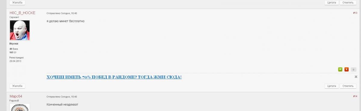 RenamedUser_18426940 Опубликовано: 1 июля, 2013 Игроки 530 публикаций 5 боёв Поделиться Опубликовано: 1 июля, 2013 01 Июл 2013 - 21:02 пользователь H0COK_B_CTAKAHE сказал:и чем помоч то??? ну ты и отец раз сам не шариш http://cdn-frm-eu.wargaming.net/wot/ru/uploads/monthly_07_2013/post-14633227-0-09898000-1372702124_thumb.jpg 2 Про безмозглы глупых троллей, вернее недотроллей....(кликабельно)Размышления по поводу форума одного из форумчан http://forum.worldoftanks.ru/index.php?/topic/900278-%d0%b1%d0%b0%d0%bd-%d1%84%d0%be%d1%80%d1%83%d0%bc%d0%bd%d1%8b%d0%bc-%d1%82%d1%80%d0%be%d0%bb%d0%bb%d1%8f%d0%bc/#top Ссылка на комментарий Поделиться на других сайтах Другие способы поделиться...