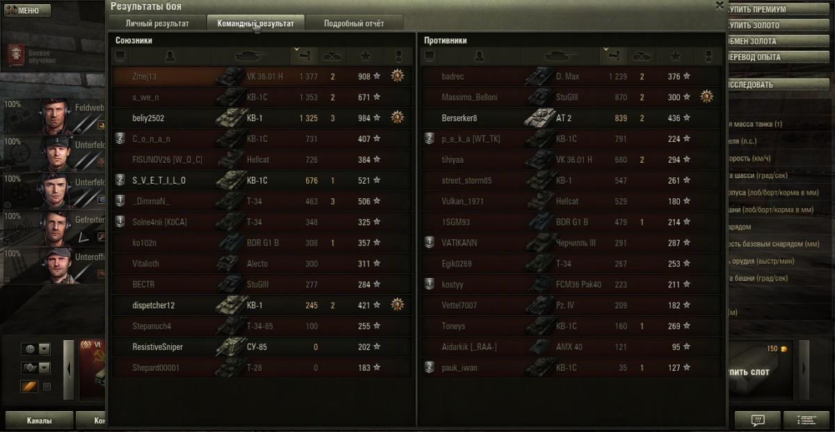 eednew Опубликовано: 25 августа, 2013 Игроки 9 352 публикации 15 602 боя Поделиться Опубликовано: 25 августа, 2013 25 Авг 2013 - 05:05 пользователь manu19 сказал:Недавно только взял его, катаюсь с коником... Есть ли смысл ставить топ башню? помимо меньшей поворачивоемости есть ли разница во времени перезарядки?Гайд читайте, там все есть. Вкратце: с топ-башней как правило переживаем два выстрела Кваса и с гарантией - три выстрела Ведьмы. Воевать с СТ можно и со стоковой. Ссылка на комментарий Поделиться на других сайтах Другие способы поделиться...