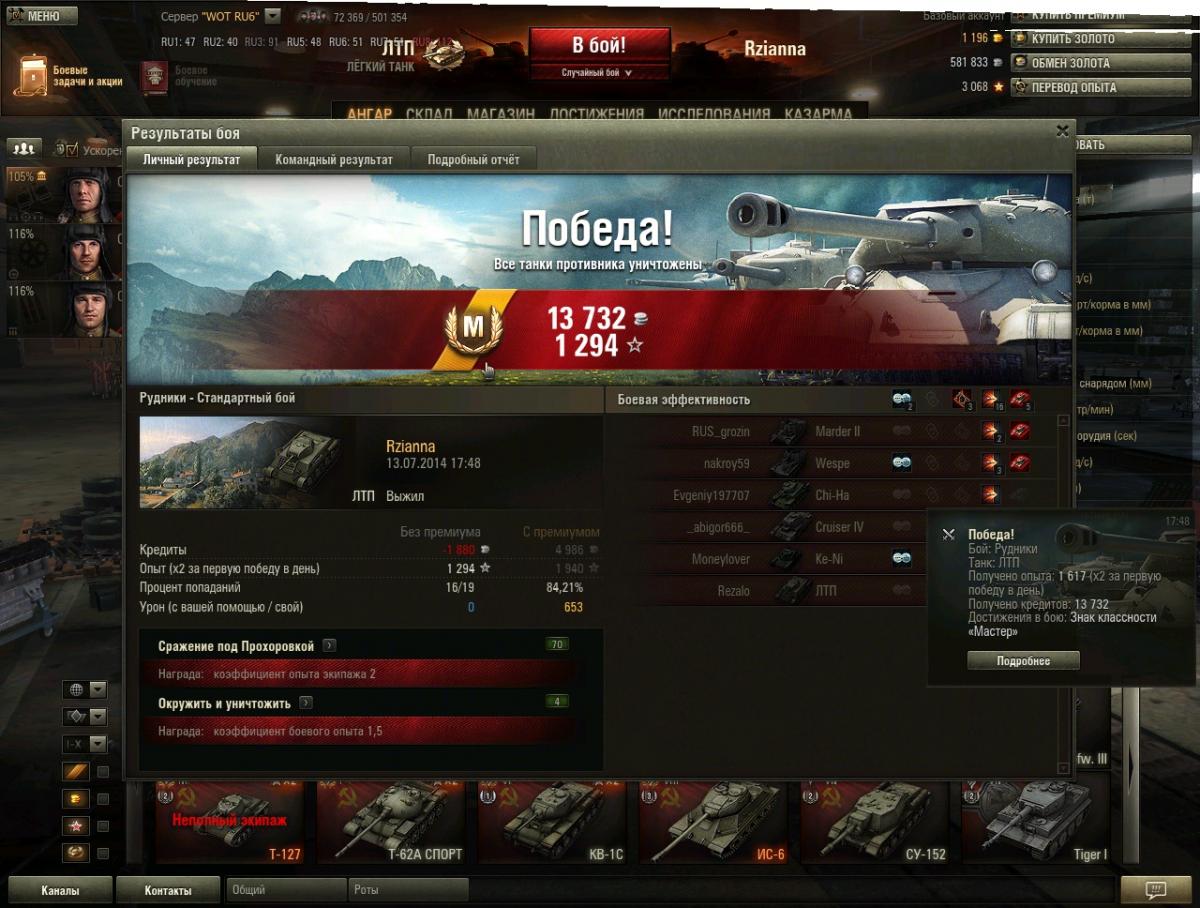 Сегодня получил за "Жаркое лето". Прошлый раз, когда раздавали- продал, на этот раз решил оставить. Экипаж ему прокачать и нормальный танк будет. Без голды, в отличие от Тетрарха, не обойтись (благо хоть она дешевая). На пятый бой взял мастера: