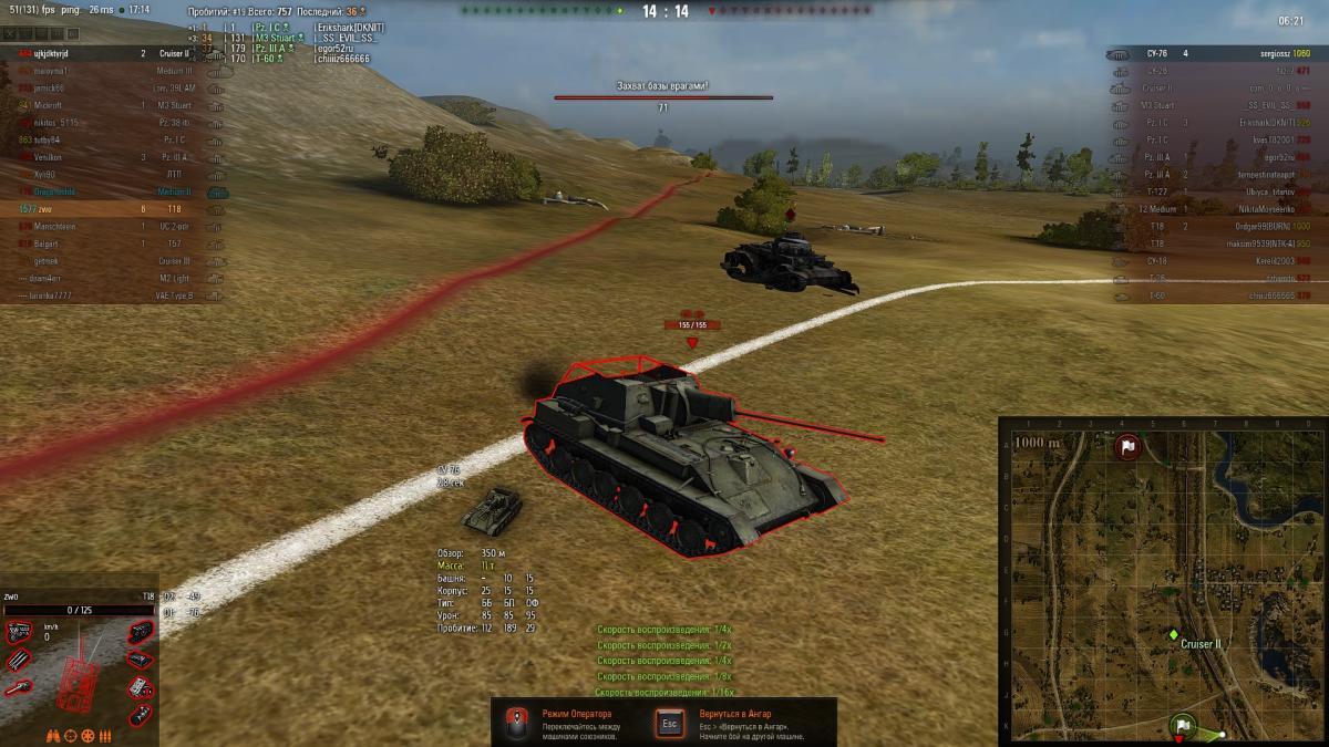 ZWA Опубликовано: 30 сентября, 2013 Игроки 888 публикаций 64 631 бой Жалоба Поделиться Опубликовано: 30 сентября, 2013 27 Сен 2013 - 16:21 пользователь totktonada57 сказал:тоже уметь надо.а я вот, например, пьяный играть не сажусь. дабы не было подобных "нипрабилов".не люблю команду подставлять.стоило не почитать тему другой ветке как она уже закрыта.ну да ладно.я вот чём подумал так как плохих игорков если верить форумам очень много тоесть 95 проц то тогда понятно что вбр не может кидать хороших оставшихся игроков постоянно на победу или на слив.тоесть хорошими игроками разбавляют плохих а так как плохих читайте выше сколько то и получаеться что хорошие частенько оказываются с плохими.вот такое пришло ко мне озорение.а может это всё мои догадки.вот скриншот хорошего моего боя. а вот 2 других где я не могу понять как су 76 стоя в круге 20-30 секунд не сетился .хотя до этого он по мне стрелял а потом исчез.до базы видно из скрина метров 70 и стоял я его вычислял когда ж он засветиться секунд 15-20.я понимаю что у него обзор лучше но расстояние то смешное и я его так и не увидел. Ссылка на комментарий Поделиться на других сайтах Другие способы поделиться...