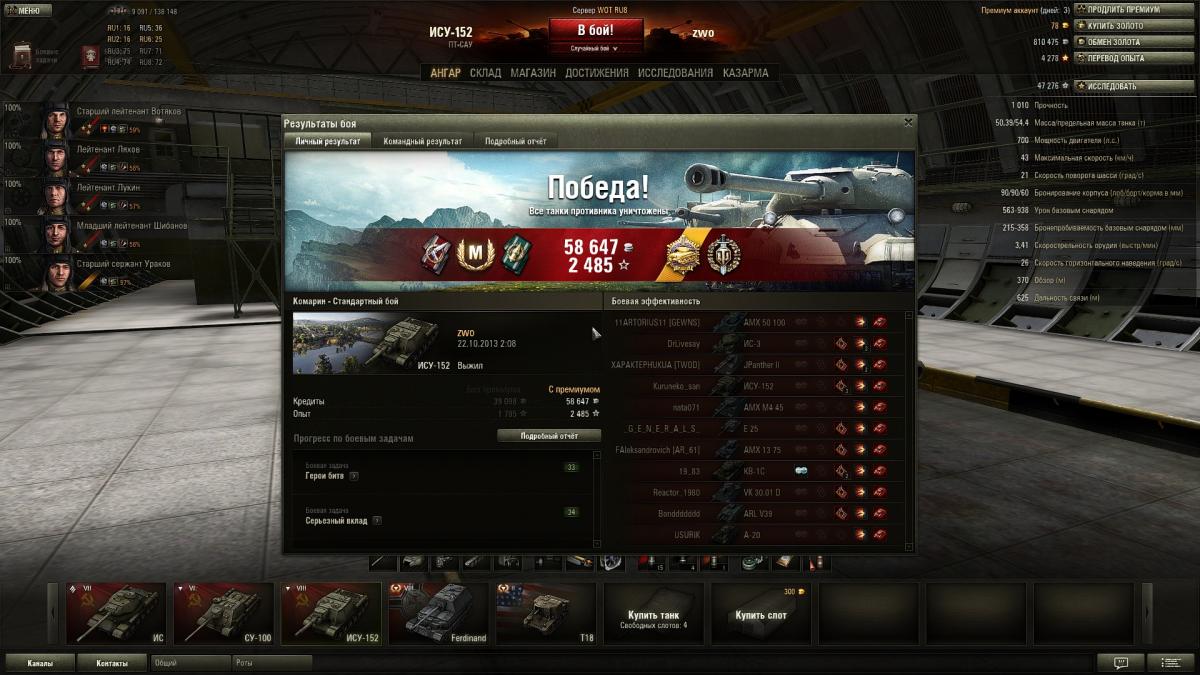 arhshed Опубликовано: 27 октября, 2013 Игроки 13 015 публикаций 17 068 боёв Жалоба Поделиться Опубликовано: 27 октября, 2013 27 Окт 2013 - 01:06 пользователь AceBuka сказал:В чем смысл чтобы командир и наводчик был одним и тем же лицом? Как это влияет на результат сведения?Командир дает бонус подчиненным в 10% своего навыка. Себе, естественно, не дает. А табличные ТТХ сейчас нормированы на 100% основного навыка. Ссылка на комментарий Поделиться на других сайтах Другие способы поделиться...