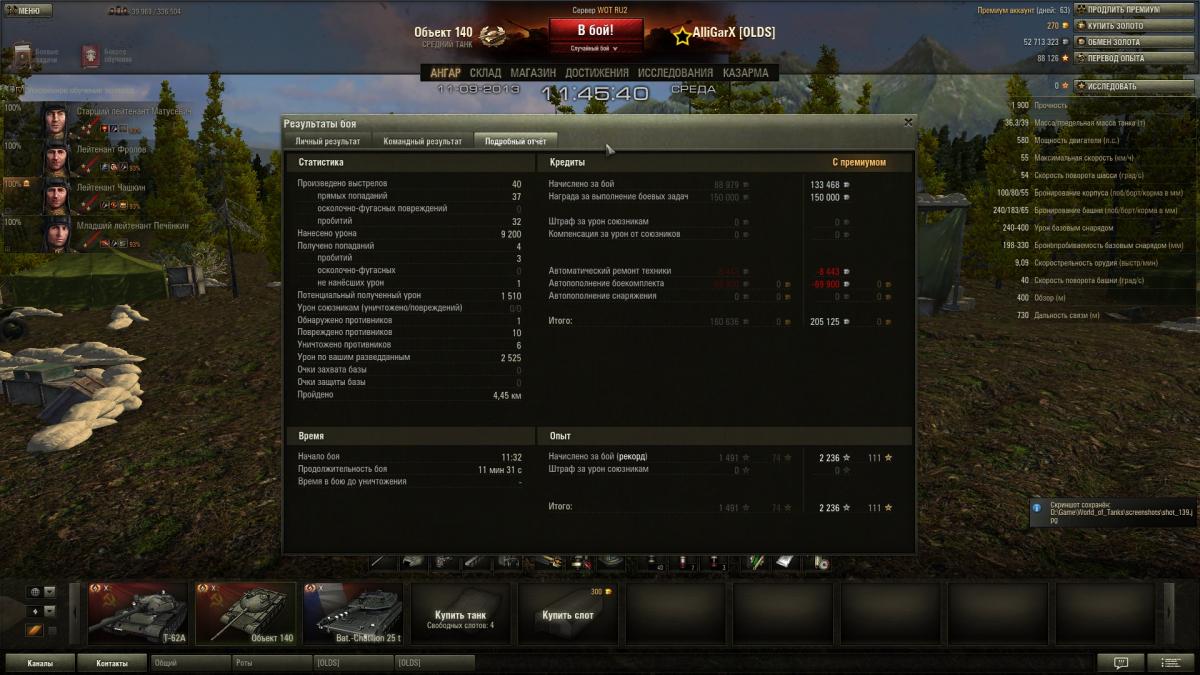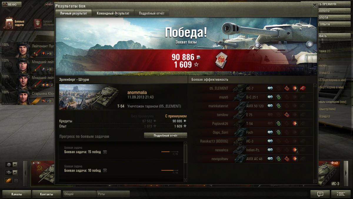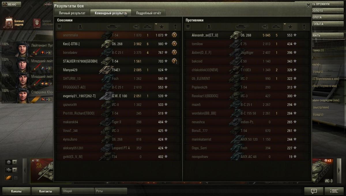 Toska_Forsite Опубликовано: 13 сентября, 2013 Игроки 162 публикации 12 313 боёв Жалоба Поделиться Опубликовано: 13 сентября, 2013 (изменено) У была меня ситуация такая - я играл на об.704 ещё в версии 0.8.7, всё здорово наши побеждают, но тут при уничтожении последнего танка противника связь с сервером резко обрывается и меня радуют табличкой "ведутся проф работы\перезагрузка сервера" или что-то в этом роде.Загрузив реплей я увидел основную информацию: опыт, урон, количество выстрелов, дата\время и т.д, но в личном и командном результатах, а так же в подробном отчёте - ничего.Так же в игре максимальный опыт за бой на об.704 совсем не то значение, что в реплее.В общем я не знаю как быть, я просто оставлю это здесь на всякий случай:Рекорд опыта при победеПобедаБой: Жемчужная река 2013-09-05 05:23Танк: Объект 704Получено опыта: 2272Получено кредитов: 65 406http://wotreplays.ru...site-ob_ekt_704Если засчитают - будет приятно, нет - ну чтож, очень жаль. Изменено 13 сентября, 2013 пользователем Toska_Forsite Ссылка на комментарий Поделиться на других сайтах Другие способы поделиться...