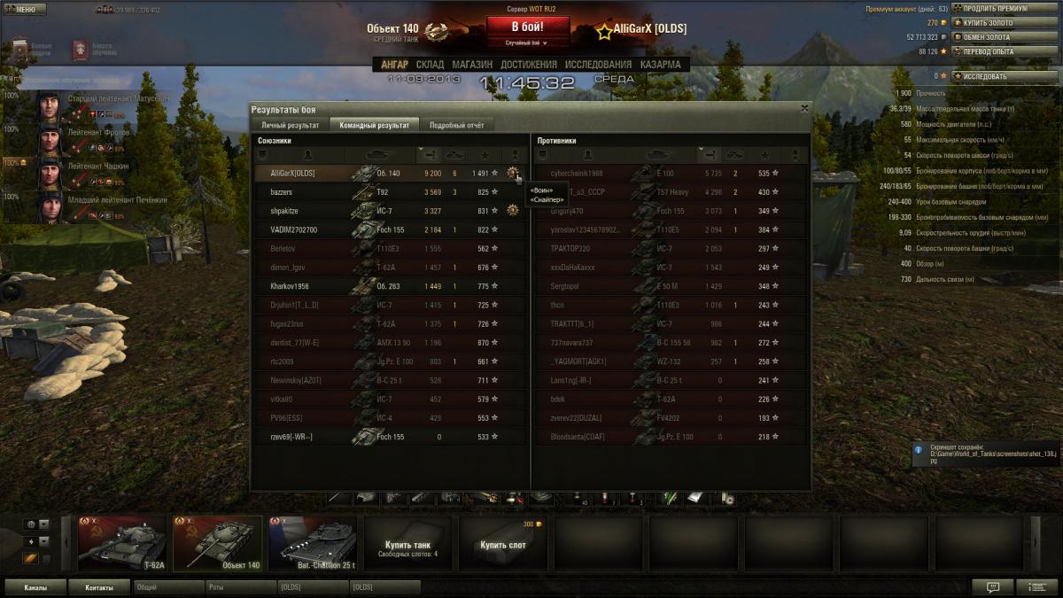 Max34_Volgogradec Опубликовано: 13 сентября, 2013 Игроки 1 348 публикаций 43 285 боёв Автор Жалоба Поделиться Опубликовано: 13 сентября, 2013 13 Сен 2013 - 03:37 пользователь Toska_Forsite сказал:У была меня ситуация такая - я играл на об.704 ещё в версии 0.8.7, всё здорово наши побеждают, но тут при уничтожении последнего танка противника связь с сервером резко обрывается и меня радуют табличкой "ведутся проф работы\перезагрузка сервера" или что-то в этом роде.Загрузив реплей я увидел основную информацию: опыт, урон, количество выстрелов, дата\время и т.д, но в личном и командном результатах, а так же в подробном отчёте - ничего.Так же в игре максимальный опыт за бой на об.704 совсем не то значение, что в реплее.В общем я не знаю как быть, я просто оставлю это здесь на всякий случай:Рекорд опыта при победеПобедаБой: Жемчужная река 2013-09-05 05:23Танк: Объект 704Получено опыта: 2272Получено кредитов: 65 406http://wotreplays.ru...site-ob_ekt_704Если засчитают - будет приятно, нет - ну чтож, очень жаль.Сожалею, но я не могу полагаться на такие реплеи, где пустуют практически все 3 вкладки результатов боя Ссылка на комментарий Поделиться на других сайтах Другие способы поделиться...