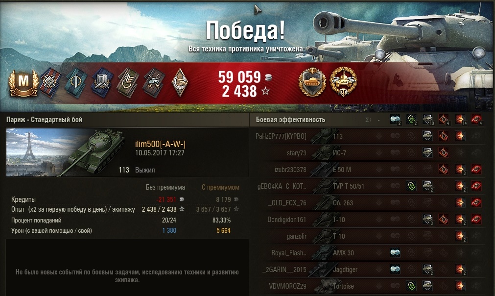 ilim500 Опубликовано: 10 мая, 2017 Игроки 19 460 публикаций 43 276 боёв Поделиться Опубликовано: 10 мая, 2017 10 Май 2017 - 17:43 пользователь ilim500 сказал:таки накрыскал)http://wotreplays.ru/site/10056672#parizh-ilim500-113http://cdn-frm-eu.wargaming.net/wot/ru/uploads/monthly_05_2017/post-1654869-0-09542400-1494427257_thumb.jpghttp://cdn-frm-eu.wargaming.net/wot/ru/uploads/monthly_05_2017/post-1654869-0-15006000-1494427286_thumb.jpg http://cdn-frm-eu.wargaming.net/wot/ru/uploads/monthly_05_2017/post-1654869-0-98845300-1494427308_thumb.jpg а так - на 35 боёв - папские 40% винрейт) [-A-W-] The Angels of War Ссылка на комментарий