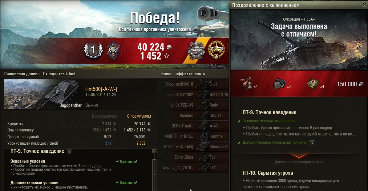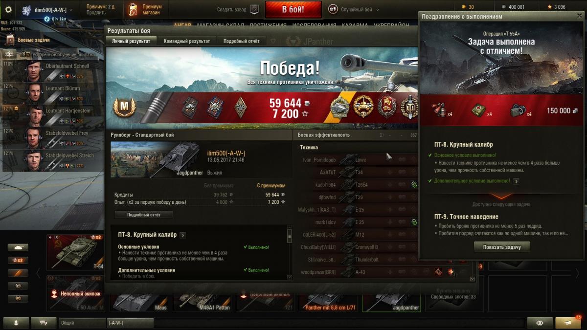 ilim500 Опубликовано: 14 мая, 2017 Игроки 19 460 публикаций 43 276 боёв Поделиться Опубликовано: 14 мая, 2017 13 Май 2017 - 22:10 пользователь ilim500 сказал:таки лбз на 4 хп сделал на яге 1))http://cdn-frm-eu.wargaming.net/wot/ru/uploads/monthly_05_2017/post-1654869-0-16632600-1494702534_thumb.jpgно чисто ВБР - в конце попался супер-персик на ОФ... http://wotreplays.ru/site/10068039#ruinberg-ilim500-jagdpanther [-A-W-] The Angels of War Ссылка на комментарий
