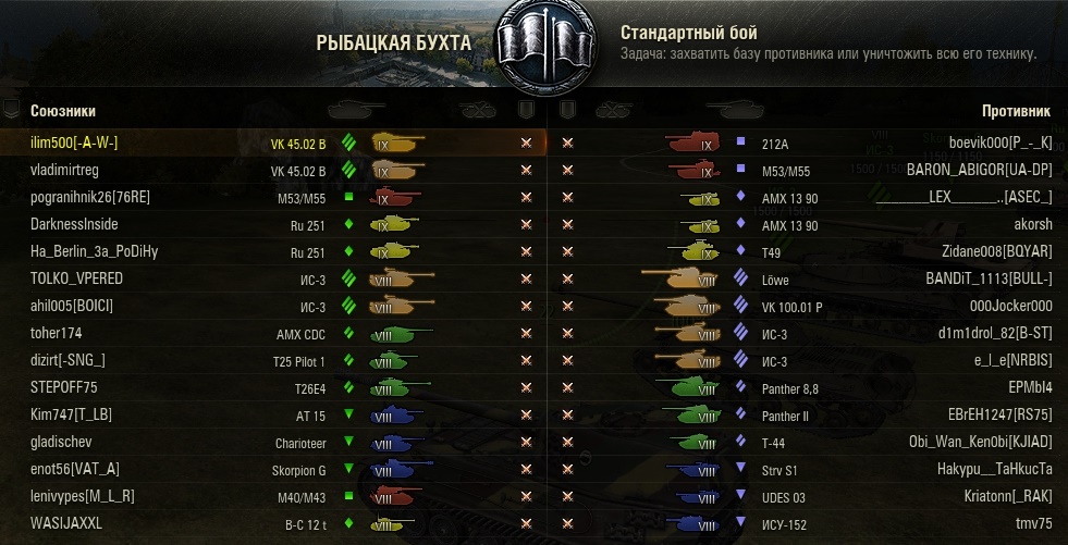 ilim500 Опубликовано: 15 мая, 2017 Игроки 19 460 публикаций 43 276 боёв Поделиться Опубликовано: 15 мая, 2017 и баланс весёлый)http://cdn-frm-eu.wargaming.net/wot/ru/uploads/monthly_05_2017/post-1654869-0-87054100-1494851939_thumb.jpg [-A-W-] The Angels of War Ссылка на комментарий
