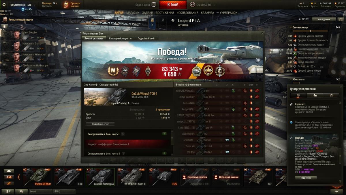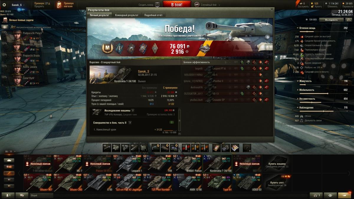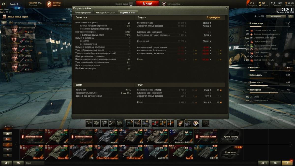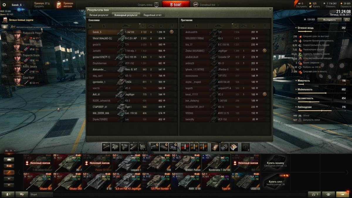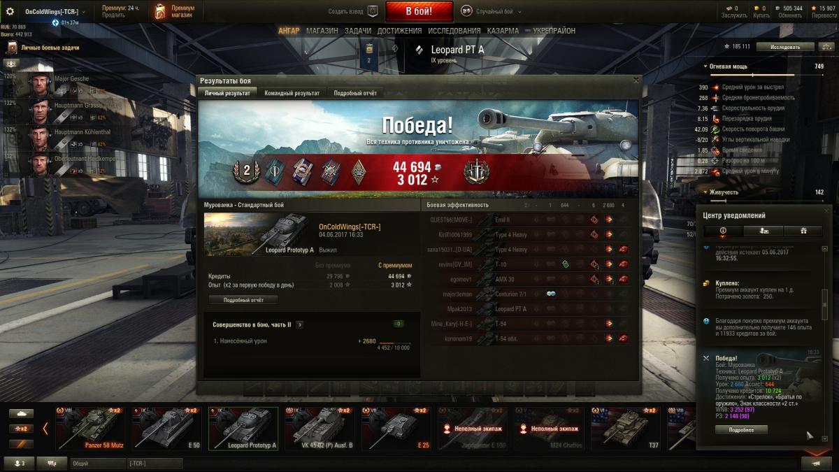 TheSunToucher Опубликовано: 3 июня, 2017 Игроки 1 676 публикаций 5 894 боя Поделиться Опубликовано: 3 июня, 2017 (изменено) Вчерась не вышло. Засел сегодня. Не играл месяц где то. 550к имеем. Сразу же камуфляж 60к на недельку на ЛеоПро. Ну и балансер просто издевается. Играя на СТ9 я ни разу не был в топе. Потому что баланс 3 - 5 - 7. Поэтому я всегда с 10ми. Иногда их 3, иногда больше. Ну да ладно.http://cdn-frm-eu.wargaming.net/wot/ru/uploads/monthly_06_2017/post-39028441-0-71483700-1496474360_thumb.jpg http://cdn-frm-eu.wargaming.net/wot/ru/uploads/monthly_06_2017/post-39028441-0-23101200-1496474373_thumb.jpgНа складе был шоколад. Так бы в минусе был. Еще 20к опыта и я продам ЛеоПро. Надеюсь нафармить ему 2 отметки.Саня, приглос выслал Изменено 3 июня, 2017 пользователем TheSunToucher Ссылка на комментарий Поделиться на других сайтах Другие способы поделиться...