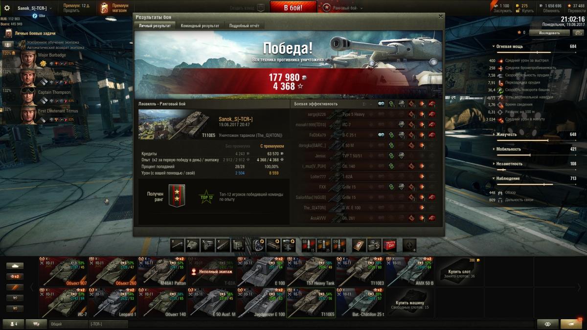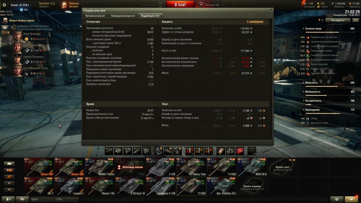 Sanok_S Опубликовано: 19 июня, 2017 Игроки 9 576 публикаций 33 973 боя Жалоба Поделиться Опубликовано: 19 июня, 2017 (изменено) дошел до 3 ранга, а дальше просто не идет и все, +1/-1, +2/-2 и т.д. за седни наверное лучий бой в РБ за все время что я играл, даже выложил репку, колоритный таки боек вышел, а ИС-7 хочется пожелать прокачать ремонт, вроде зеленый, а без ремонта, не годится http://cdn-frm-eu.wargaming.net/wot/ru/uploads/monthly_06_2017/post-10821115-0-96683500-1497903897_thumb.jpghttp://cdn-frm-eu.wargaming.net/wot/ru/uploads/monthly_06_2017/post-10821115-0-60337700-1497903901_thumb.jpghttp://cdn-frm-eu.wargaming.net/wot/ru/uploads/monthly_06_2017/post-10821115-0-81251100-1497903904_thumb.jpghttp://wotreplays.ru/site/10184739#statsзыко кого в бою встетил, выходит меня на стрэме показывалиhttp://cdn-frm-eu.wargaming.net/wot/ru/uploads/monthly_06_2017/post-10821115-0-66597700-1497903908_thumb.jpgпечалит другое, я не смогу нормально пошпилить на этой неделе, завтра ДР, с пятницы по восресенье нуна на дачу отмечать, в среду тоже надо бы смотаться, завтра на работе поздравлять будут да после работы надо ещё встретится с товарищем + со своими девчатами посидеть где-нить Изменено 19 июня, 2017 пользователем Sanok_S 1 Ссылка на комментарий Поделиться на других сайтах Другие способы поделиться...