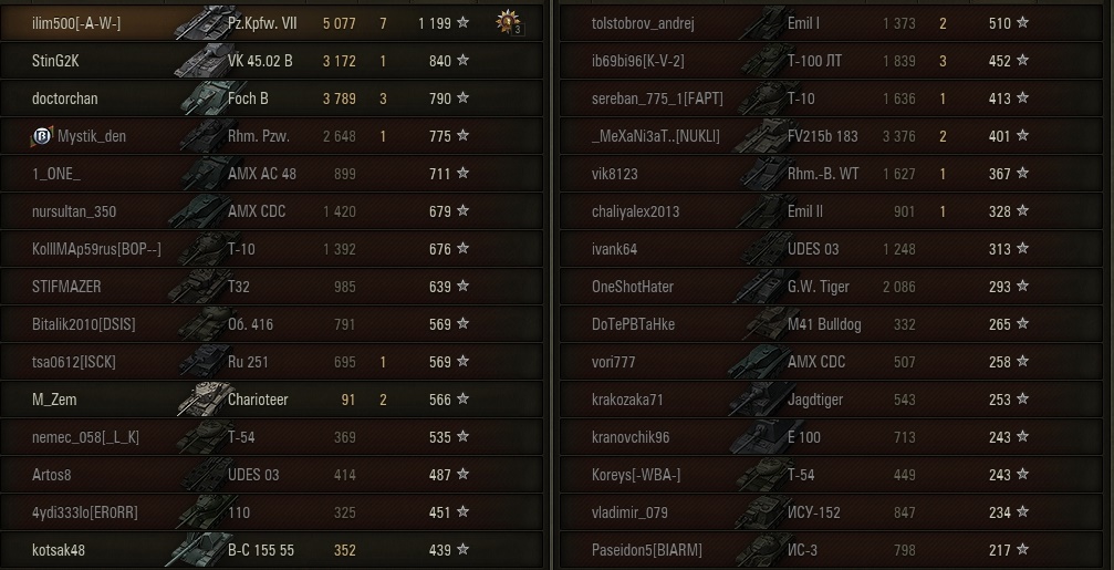 ilim500 Опубликовано: 12 октября, 2017 Игроки 19 460 публикаций 43 276 боёв Жалоба Поделиться Опубликовано: 12 октября, 2017 12 Окт 2017 - 19:54 пользователь OnColdWings сказал:Чутка исправился. Катаю убожество 5 левел http://cdn-frm-eu.wargaming.net/wot/ru/uploads/monthly_10_2017/post-3864146-0-82690100-1507827287_thumb.jpg ниже 8 уровня - страшно) [-A-W-] The Angels of War Ссылка на комментарий Поделиться на других сайтах Другие способы поделиться...