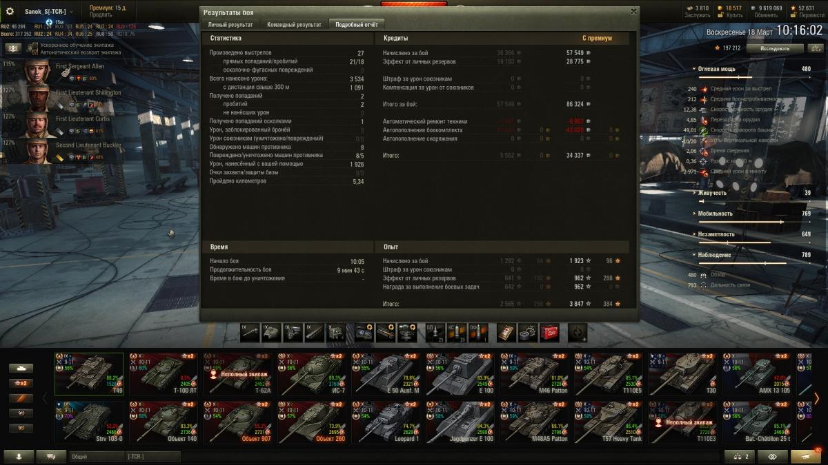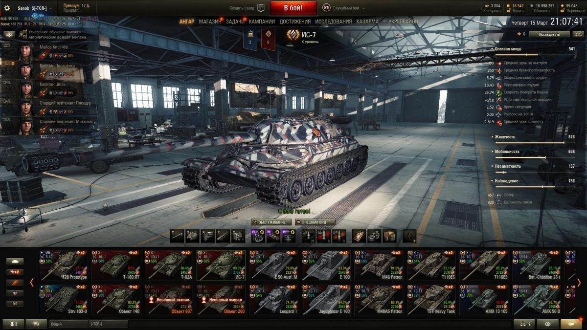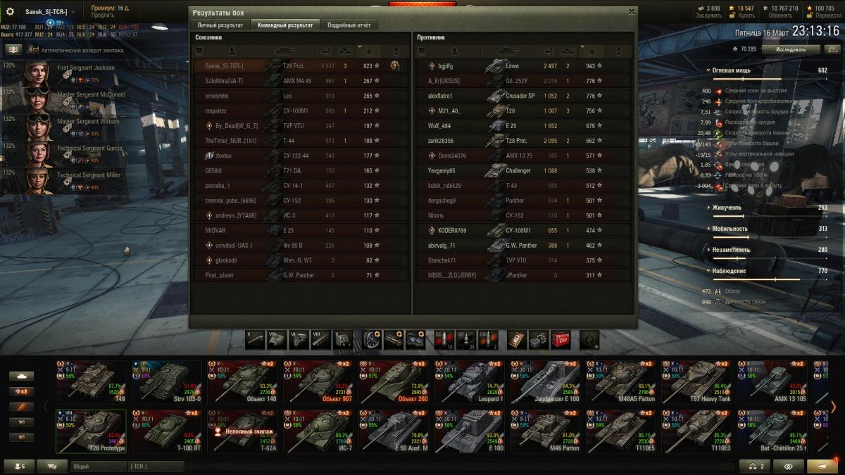 OnColdWings Опубликовано: 16 марта, 2018 Игроки 6 006 публикаций 17 420 боёв Автор Жалоба Поделиться Опубликовано: 16 марта, 2018 (изменено) Покатал вчерась, чтобы день према не сгорел. Такое себе ... Что то ПЕршинга моего колотило от 10 и 9. Тымы жесткие были. Иногда смешно было, Маусс видать не отошел еще от РБ и едет на направление СТ и т.д. Часто наблюдал. Ну, а когда 9 или в топе - норм стрелял. Но, в целом, не впечатлил вчерашний вечер в тунках. До 9 Паттона очень далеко, качаю и экипаж на резервах и серу и поочередно свободка/доп опыт за бой, ибо они у меня часовые. Так прям и тянется рука поставить улучшенный вентиль на Першинга, пока качаю девятку, набью бон 100. Т.е. смогу снять его, если будет нужно. Камуфляж не смотрел пока что. 500 зоита норм. Попутно ЛБЗ за СТ на 55 выполняю с отличием. В общем все, как обычно, за исключением вчерашнего трэша в командах. Да, забыл сказать, слил лям !! вчера за 24 боя Кола и голда и ремкоаптеки большие. На складе вообще пусто. Изменено 16 марта, 2018 пользователем OnColdWings Ссылка на комментарий Поделиться на других сайтах Другие способы поделиться...