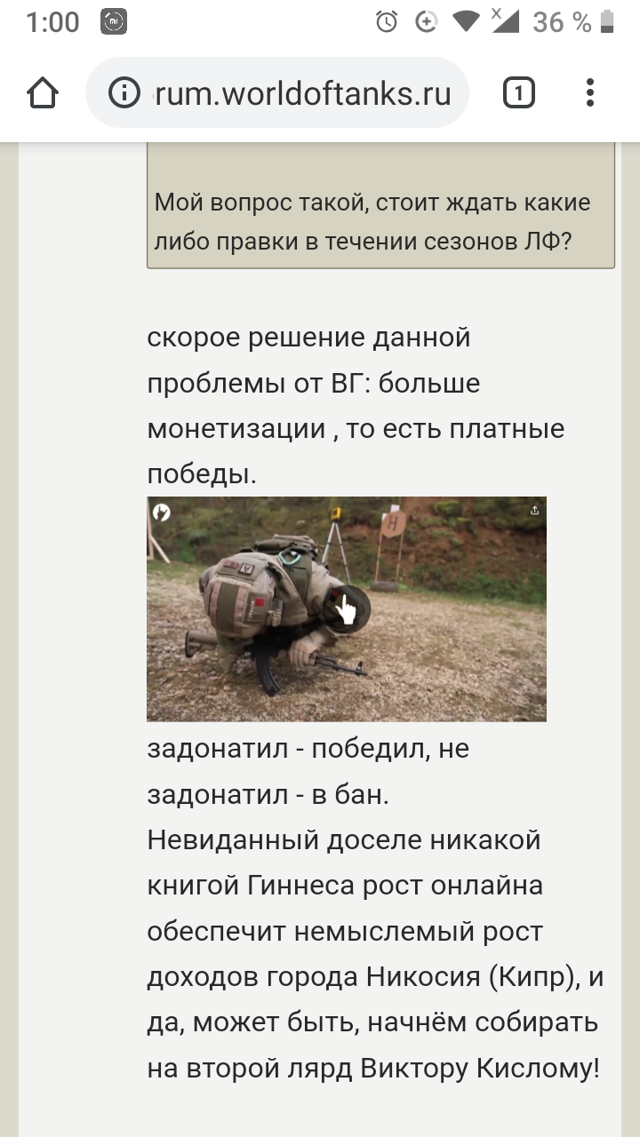 anonym_QBA6iDyUkjKj Опубликовано: 6 февраля, 2019 Игроки 167 публикаций 33 544 боя Жалоба Поделиться Опубликовано: 6 февраля, 2019 http://cdn-frm-eu.wargaming.net/4.5/style_images/wg/snapback.pngSanok_S (06 Фев 2019 - 07:15) писал:привет Костик, я думал ты вообще бросил шпилить, хотя и мы не часто этим страдаем. На твой вопрос ответа не дам, у меня нет прожетто и качать его не хочу, танк интересный, но влом, ТВП мне нравится, но играть на нем очень сложно ибо брони в нем нет, вообще нет, но есть подвижность, не плохие УВН и самый быстрый барабан, но не все так просто, 1,5 сек. внутри барабана крайне мало и реализовать их не всегда удается ибо между выстрелами орудие не успевает сводиться даже на сборке стаб+приводы+вентиль+ББ+паек, возможно фулл боновое оборудование таки решит этот вопрос, но вакантных 3 модулей как бы нет Пробитие прем пулек тоже не 330-340, а всего лишь 310, т.е. уверенно пробивать в лобешник японских фугасников не выйдет, лично мне ТВП понравился, но на нем нужно крайне осторожно играть, смотри сам, пробуй на тесте. Кстати, можно не в ТВП прокачиваться, а в шкоду 9 уровня, у нее КД барабана побыстрее, правда и барабан всего 3 пульки, но уровень боев более комфортный, сейчас 9ки как бы ловчее играют чем 10ки ибо топы крайне часто кидает в бои 12 лвл. и увидеть будучи на 10м уровне танки 9 и 8 уровня уже нубкой считается, дожились йа кстати себе выкупил шкоду 9 уровня, буду ее катать, жду скидки на переобучение экипажу и сброс перков + смену специальности, у меня и так очередь танков на выкат вот какая, кстати вот и шкода 9 уровня что я ранее приобрел по скидке от новогодней елочкиhttp://cdn-frm-eu.wargaming.net/wot/ru/uploads/monthly_02_2019/post-10821115-0-65559100-1549437337_thumb.jpgсоветская ПТ 7 уровня купил для выполнения ЛБЗ 2.0 на танкование за союз, возможно продам ее сразу как выполню, ну посмотрю, вся остальная техника ждет либо мастера либо 2-х отметок на стволах либо и то и другое, но это ещё на долго Ага...спс.. Есть 80к свободки - думал куда перевезти.мне 12 уровни боев нравятся,когда я на 4005...с восьмерками все слишком быстро Ссылка на комментарий Поделиться на других сайтах Другие способы поделиться...