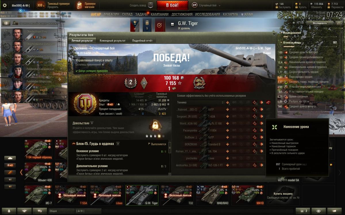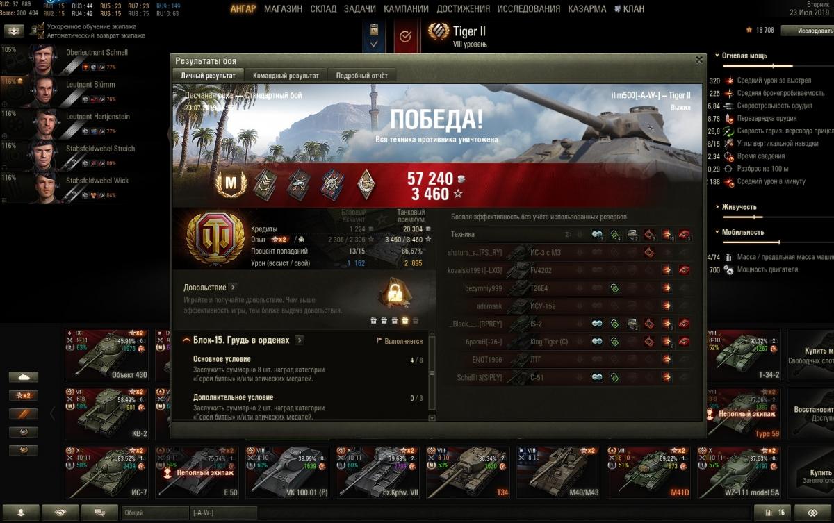 ilim500 Опубликовано: 24 июля, 2019 Игроки 19 458 публикаций 43 276 боёв Жалоба Поделиться Опубликовано: 24 июля, 2019 (изменено) http://cdn-frm-eu.wargaming.net/4.5/style_images/wg/snapback.pngTheSunToucher (24 июл 2019 - 08:18) писал: Я тоже иду на него, если судить по скринам выше ) Так сказать вспомнить былое ) Сейчас на 3601 беру 2 отметку, фармлю на Тигра. Как кидает сейчас 8и? Боль и страдания и только потом в топ или полегче? да хз, пока слишком мало сыграл)но 8 уровень среди 10-ых по мне так приятнее 10-ых против 10-ых: Изменено 25 июля, 2019 пользователем ilim500 [-A-W-] The Angels of War Ссылка на комментарий Поделиться на других сайтах Другие способы поделиться...