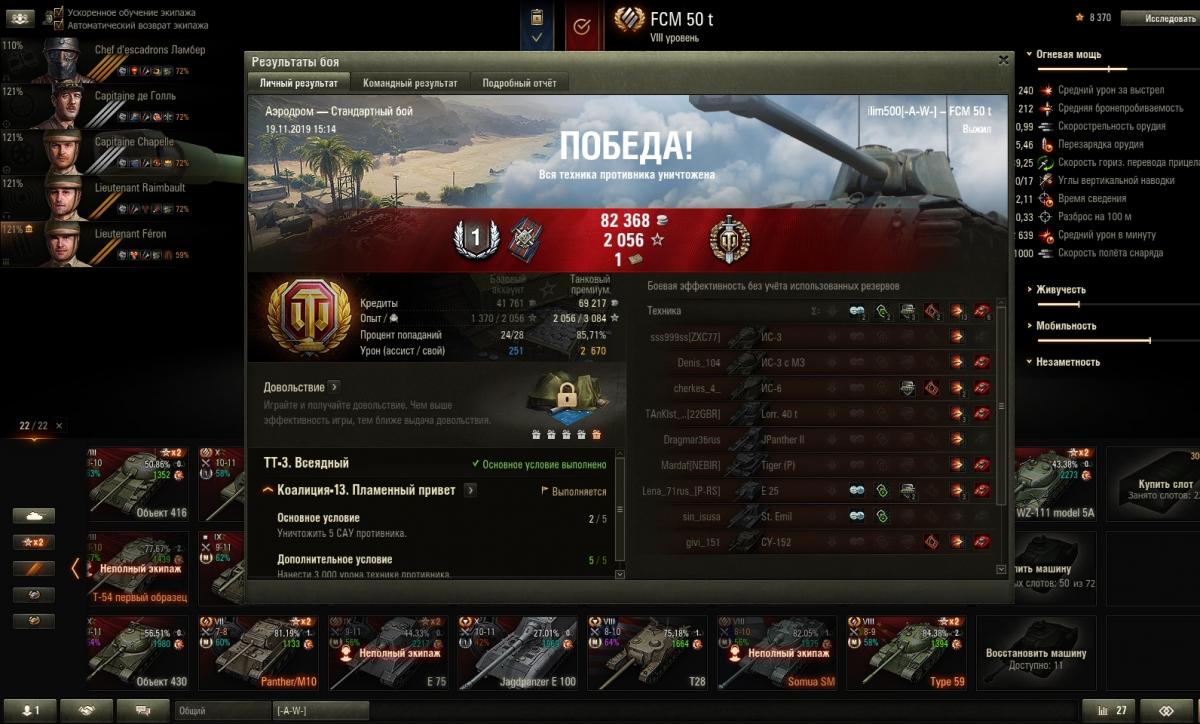TheSilentAssault Опубликовано: 20 ноября, 2019 Игроки 161 публикация 9 611 боёв Жалоба Поделиться Опубликовано: 20 ноября, 2019 (изменено) Всем хааай.Я тоже не сижу без дела, поигрываю. Недавно вот:http://cdn-frm-eu.wargaming.net/wot/ru/uploads/monthly_11_2019/post-94634838-0-89738800-1574230105_thumb.jpgСделал на этом, с такими перками :http://cdn-frm-eu.wargaming.net/wot/ru/uploads/monthly_11_2019/post-94634838-0-11347400-1574230183_thumb.jpgСделал случайно. На скилле так сказать Что говорит нам о скилозависимости в игре.Теперь у меня мой Фердинант выглядит так:http://cdn-frm-eu.wargaming.net/wot/ru/uploads/monthly_11_2019/post-94634838-0-84032700-1574230289_thumb.jpgБуду доводить его до ума и остановлюсь на нем. Так же сделаю стоп на Пантере итальянской, на Т-44. Все. Дальше отметочки. С Тиграми пока не решил. Оставаться на 1 или переходить на КТ. Изменено 20 ноября, 2019 пользователем TheSilentAssault Ссылка на комментарий Поделиться на других сайтах Другие способы поделиться...