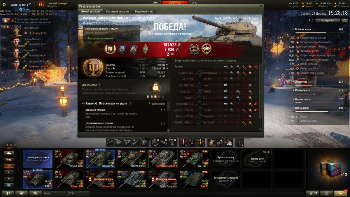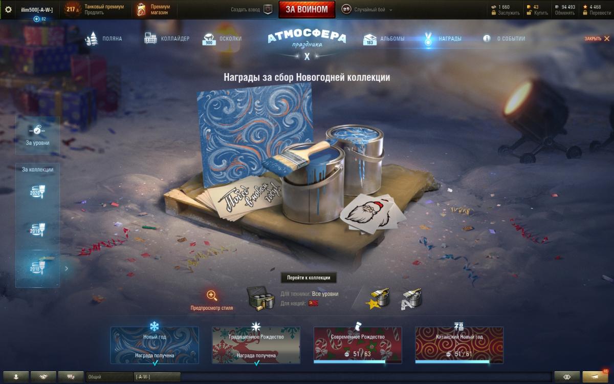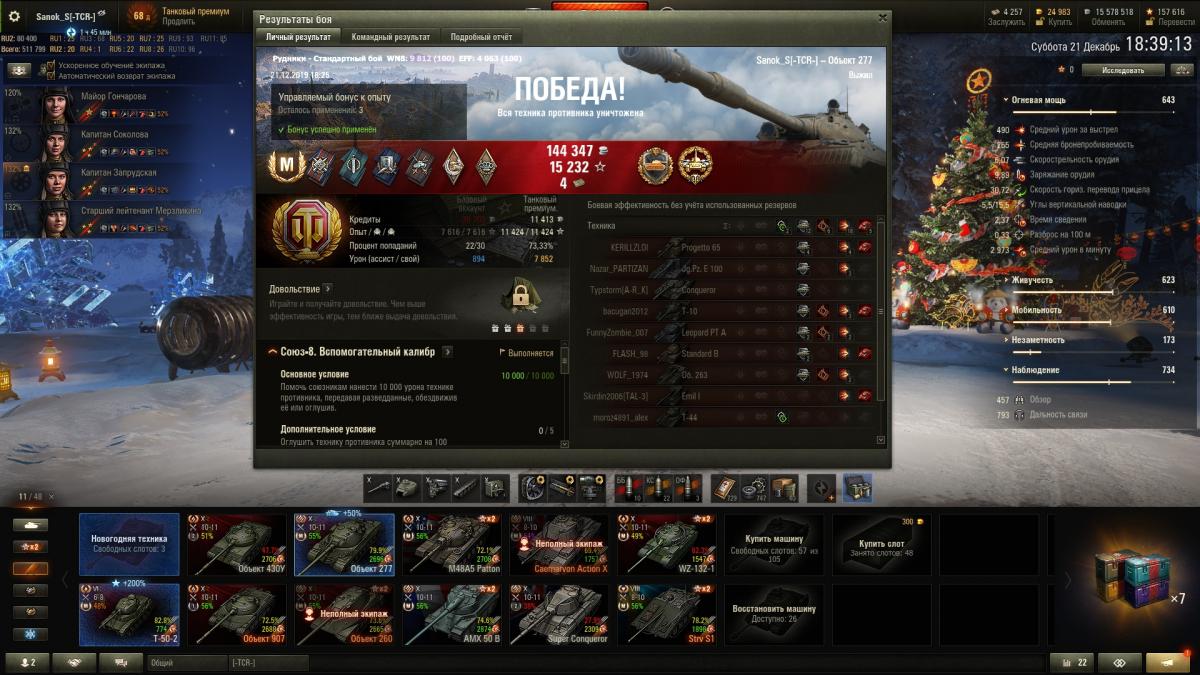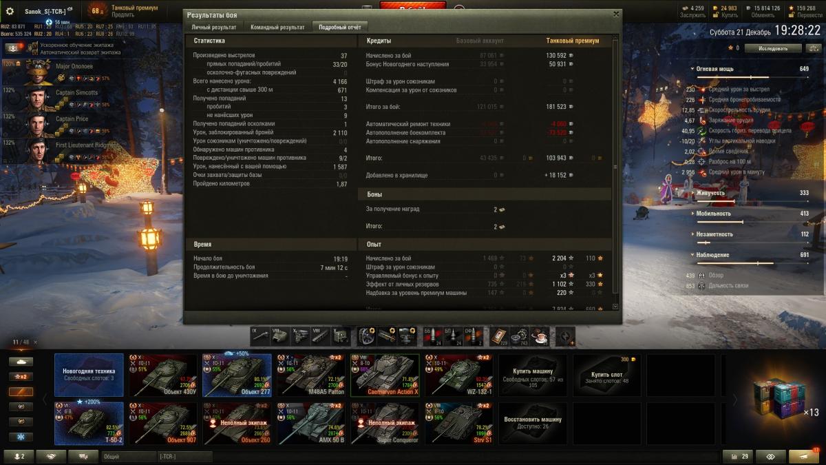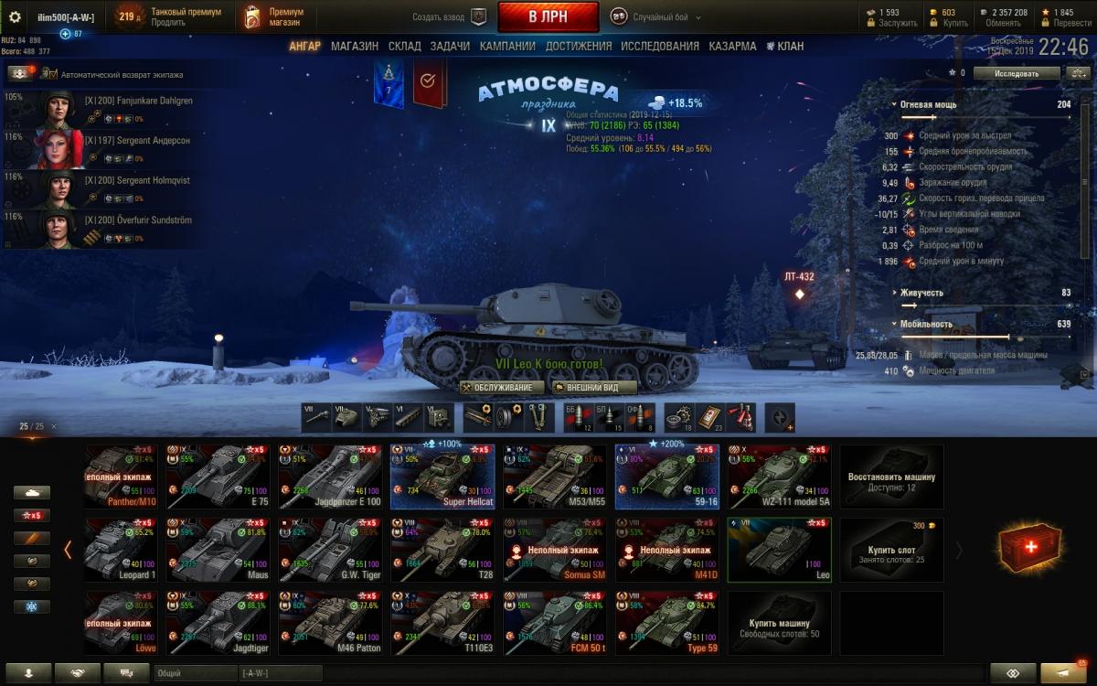 ilim500 Опубликовано: 13 декабря, 2019 Игроки 19 460 публикаций 43 276 боёв Жалоба Поделиться Опубликовано: 13 декабря, 2019 (изменено) пошли лутбоксы от картошки...взял адын штук:http://cdn-frm-eu.wargaming.net/wot/ru/uploads/monthly_12_2019/post-1654869-0-55775700-1576252152_thumb.jpgстиль на лт10 франков.спс кровавому вигэ, что бы я без него делал, с 1 экипажем на ветку тяжей французиков аж на две прокачанные)_))притом ни вовзращаццо на 50бэ, ни выкупать свой 45% амх 54 не тянет по нынешнему рандому)ну, елка 9 прокачал. В прошлых годах было дольше.даёт чертежей по нациям - хватило, чтобы открыть 7 уровни у шведов (скорее всего по тяжам пойду в первую очередь)http://cdn-frm-eu.wargaming.net/wot/ru/uploads/monthly_12_2019/post-1654869-0-71793800-1576490981_thumb.jpgблаго по экипажу то ли с прошлой, то ли с позапрошлой елки были шведо-самки - без наводчика. (Поставил снегурочку этого года)да и учебных пособий накопилось до опы всем до 2.9 перка сделал - а персональным пособием за елку 10 сразу почти командирше 4 перк открыл)как-то проблема перковости экипажа сейчас просто за серебро решается - люди вкидывают по паре десятков лямов в экипаж и всё)) и английскую арту - пока не покупал, может чертежами, если возьму елку 10 атмосферы - на 8 хватит)елка добилась до 10 вообще легкоhttp://cdn-frm-eu.wargaming.net/wot/ru/uploads/monthly_12_2019/post-1654869-0-24503600-1576618847_thumb.jpgсейчас главная фишка, это большие украшения по 2.5% к фарму - первое стоит 500 осколков, второе уже 2000, вроде - но оно дропануло из малой коробки - 3-е укашение будет 3.000 осколков...но тут я откырл прошлые колеции - на НГ2019 у меня вообще собака не валялась, чтобы камо получить нужно 4-5.000 осколков за школу елки, а вот за 2018 за чуточку осколков взял камо на советов и немцев)http://cdn-frm-eu.wargaming.net/wot/ru/uploads/monthly_12_2019/post-1654869-0-56985400-1576618874_thumb.jpgПущай лежат))таки взял арту 7 англов и с потраченными чертежами мне до 8 арты осталось аж 30.000 опыта - вообще лафа.а так ... нужно, в принципе фармить - е4 выкупать для экипажа с е5, француза тяжа какого взять - скорее всего амх51 выкуплю 9 уровень без барабана, хотя таки поглядыаваю на 50бе))ну и китайцев - то ли вз120, то ли малютку т34-2))прошел за 15 боёв 59-16, поставил лт7 китая - но надо свободки подкопить для стока... ну и под НГ может коробок таки куплю - уж очень этого совета двухпушкового хочеццо)http://cdn-frm-eu.wargaming.net/wot/ru/uploads/monthly_12_2019/post-1654869-0-13906200-1576619137_thumb.jpgа то и нового тяжа према 8 нецев - 75тs) Изменено 17 декабря, 2019 пользователем ilim500 [-A-W-] The Angels of War Ссылка на комментарий Поделиться на других сайтах Другие способы поделиться...